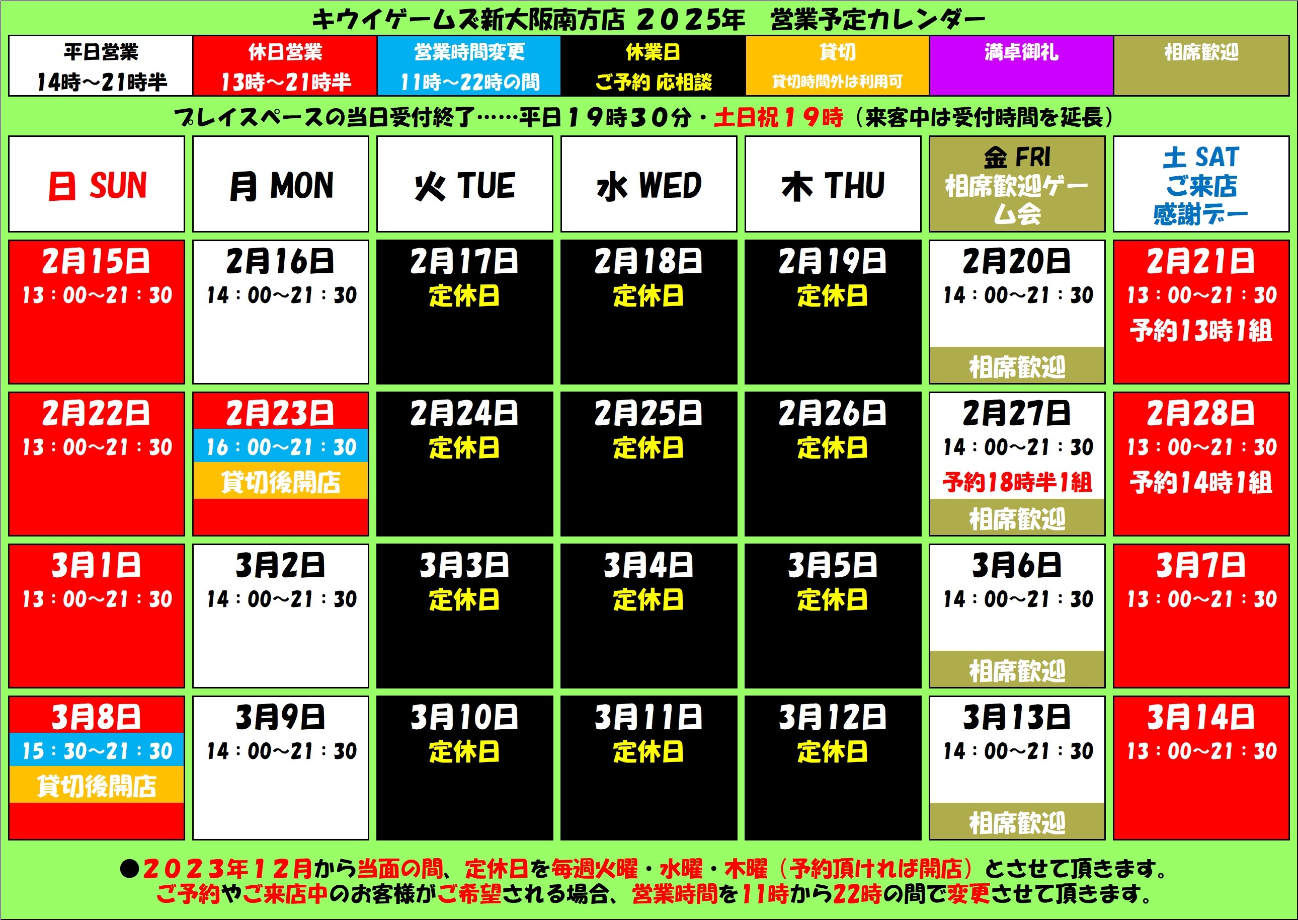 【2026年3月2日(月)14時00分】21時30分(受付終了19時)まで平日営業で開店させて頂きます。お席に余裕がございます。お気軽にご予約ご来店下さいませ。再度の緊急事態宣言や自粛要請、ご予約やご来店中のお客様のご希望により、営業時間の変更や臨時休業の可能性がございます。今後の営業情報にご注意ください。JR新大阪駅・徒歩3分。お得な学割半額、TRPGでのご利用も。お気軽にご予約ご来店下さいませ☆ #ボードゲーム #TRPG