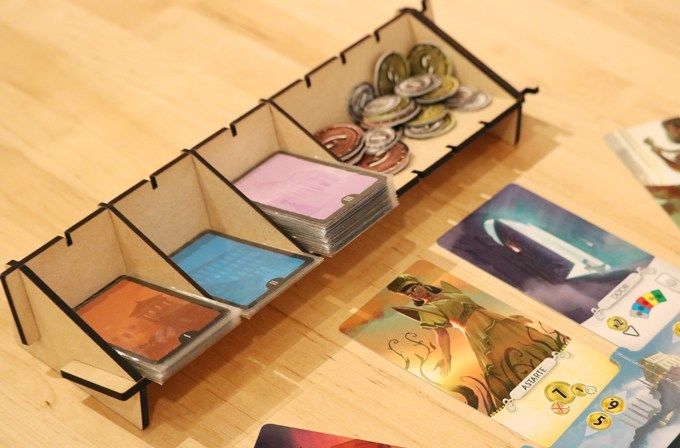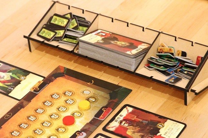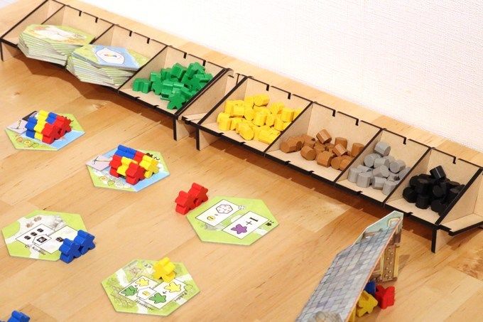 各ボードゲームに適するように、仕切り板の位置を変えて使用できるのが特徴です。