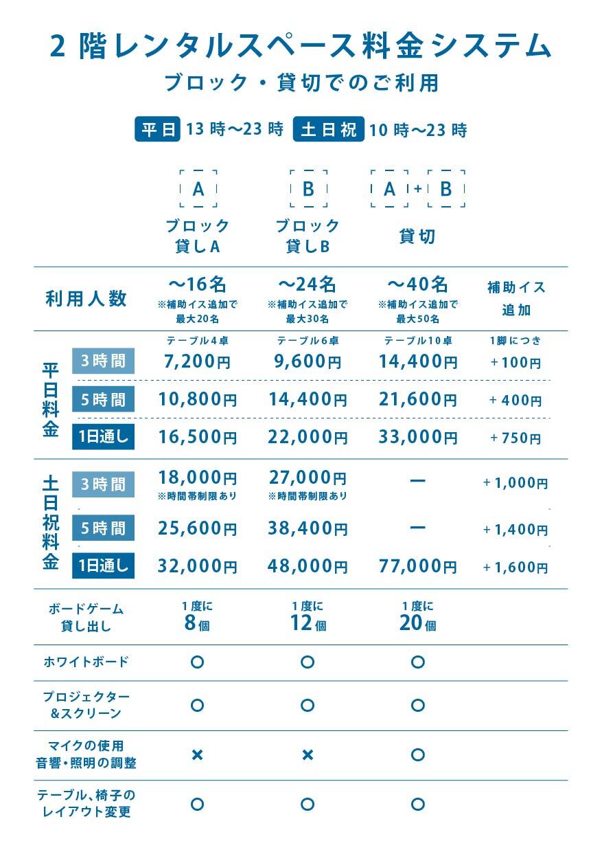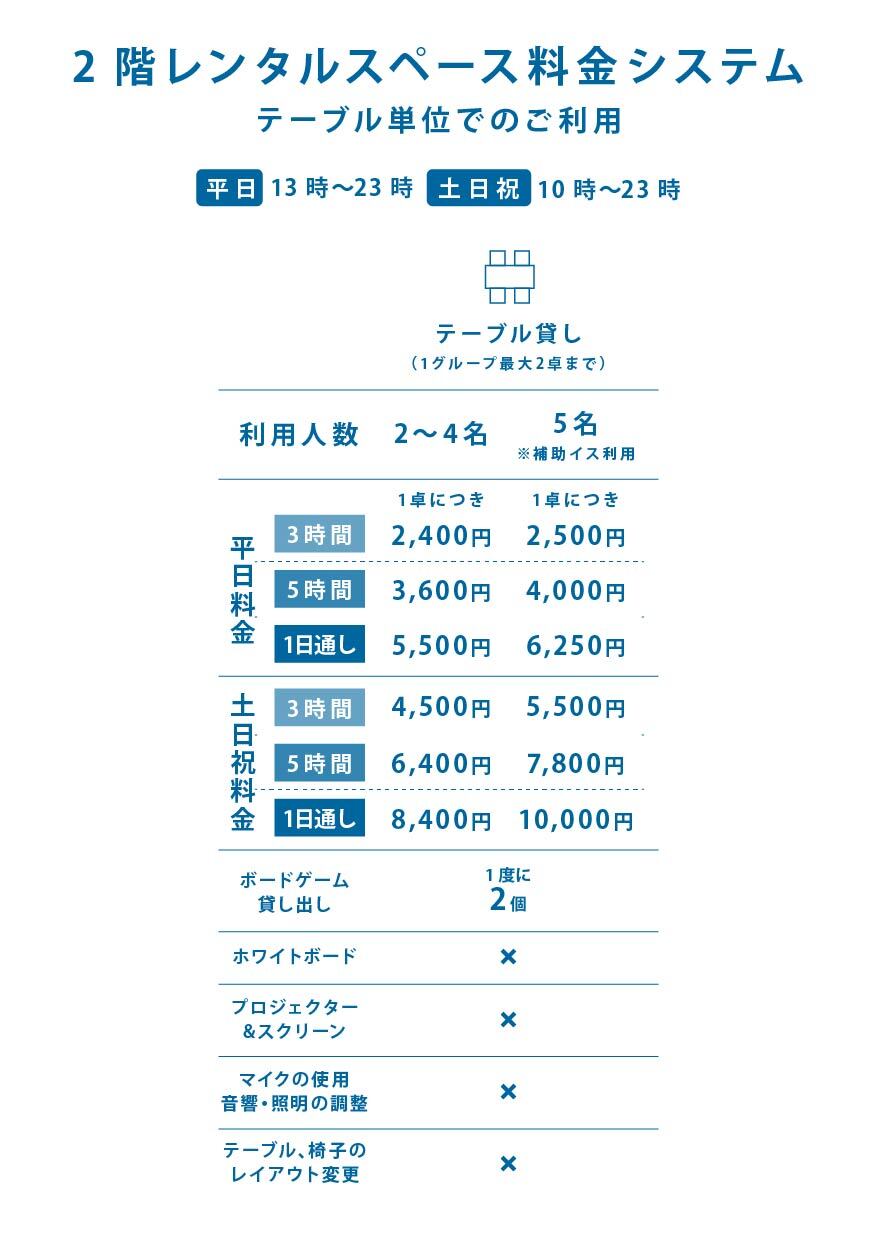 ・1階ボードゲームカフェよりもお得な料金でご利用いただけますが、スタッフが常駐していないためゲーム紹介やルール説明は行っておりません。