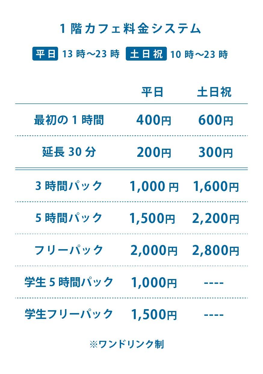 ・一時的な退店は可能ですが、退店中のお時間もご利用時間に含めて計算させていただきます。また貴重品等の管理はお客様ご自身にお任せしております。ご注意ください。