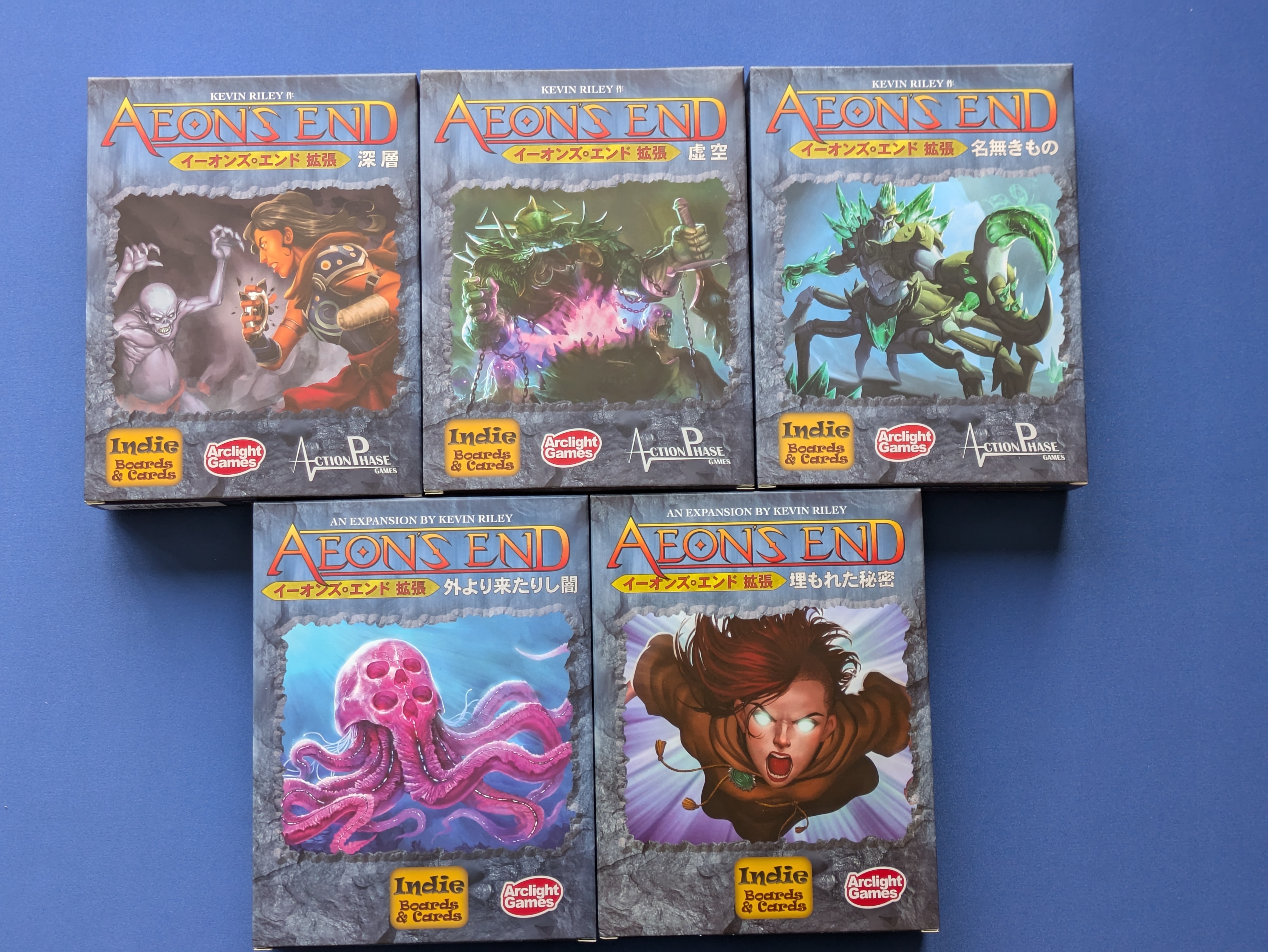 イーオンズ・エンドのミニ拡張5種と拡張1種です。