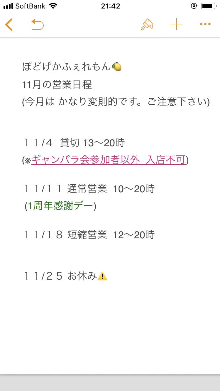 - 約1ヶ月前2025年10月29日 01時38分頃11月の営業日程今月は16日がお昼からの営業となりますのでご注意下さい64ページビュー