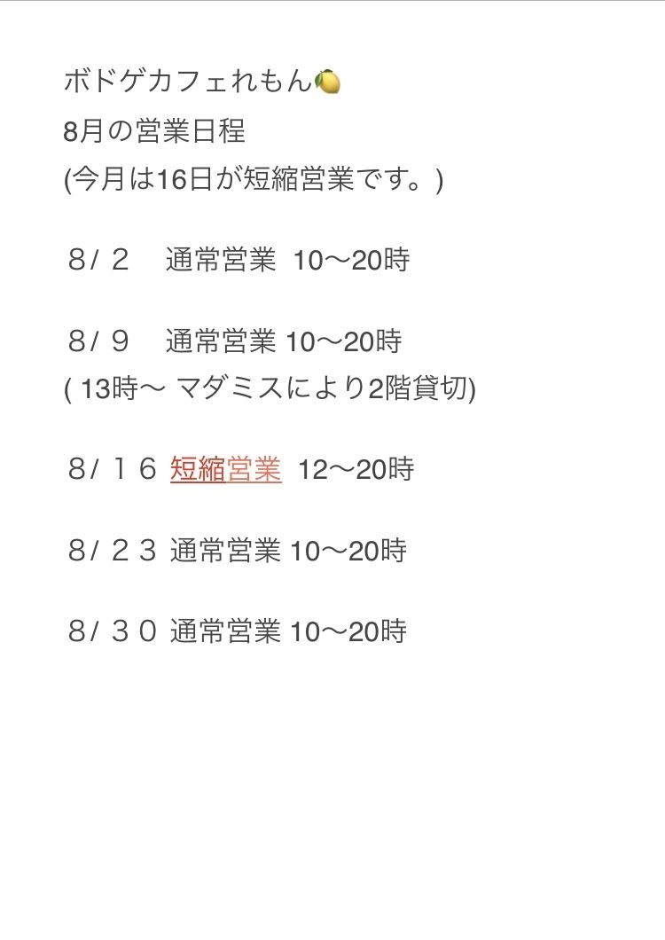 - 4ヶ月前2025年07月28日 10時15分頃8月の営業日程今月は24日がお昼からの営業になりますのでご注意ください!61ページビュー