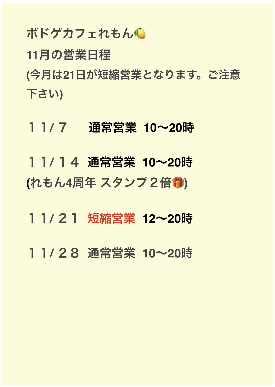 来月は21日がお昼からの営業になりますのでご注意ください!