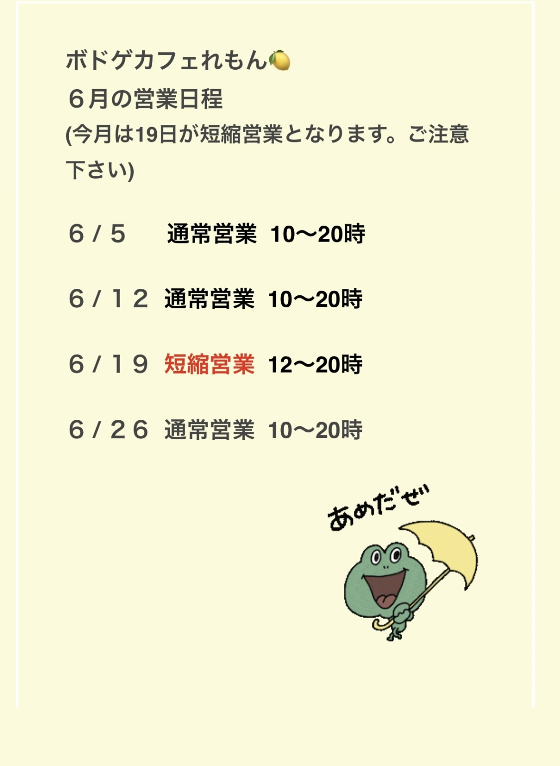 今月は19日がお昼からの営業になりますのでご注意ください!