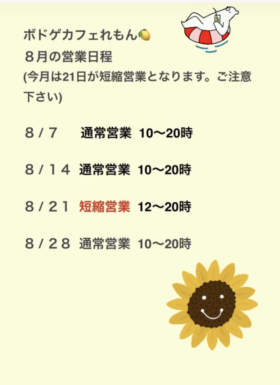 8月の営業日程