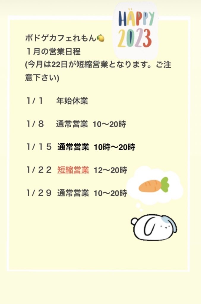 1月の営業日程
