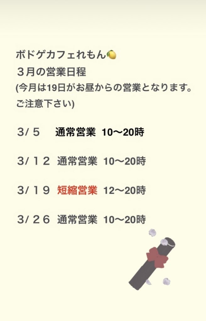 今月は19日がお昼からの営業になりますのでご注意下さい!
