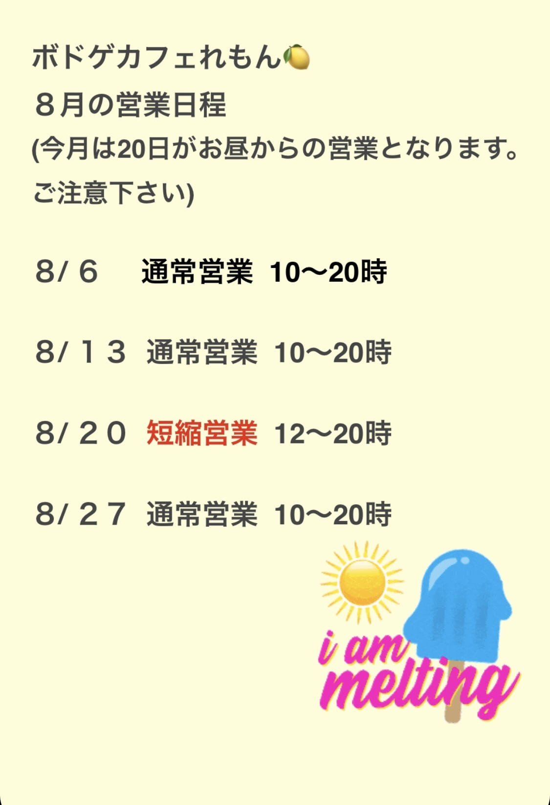 今月は20日がお昼からの営業となりますのでご注意下さい!