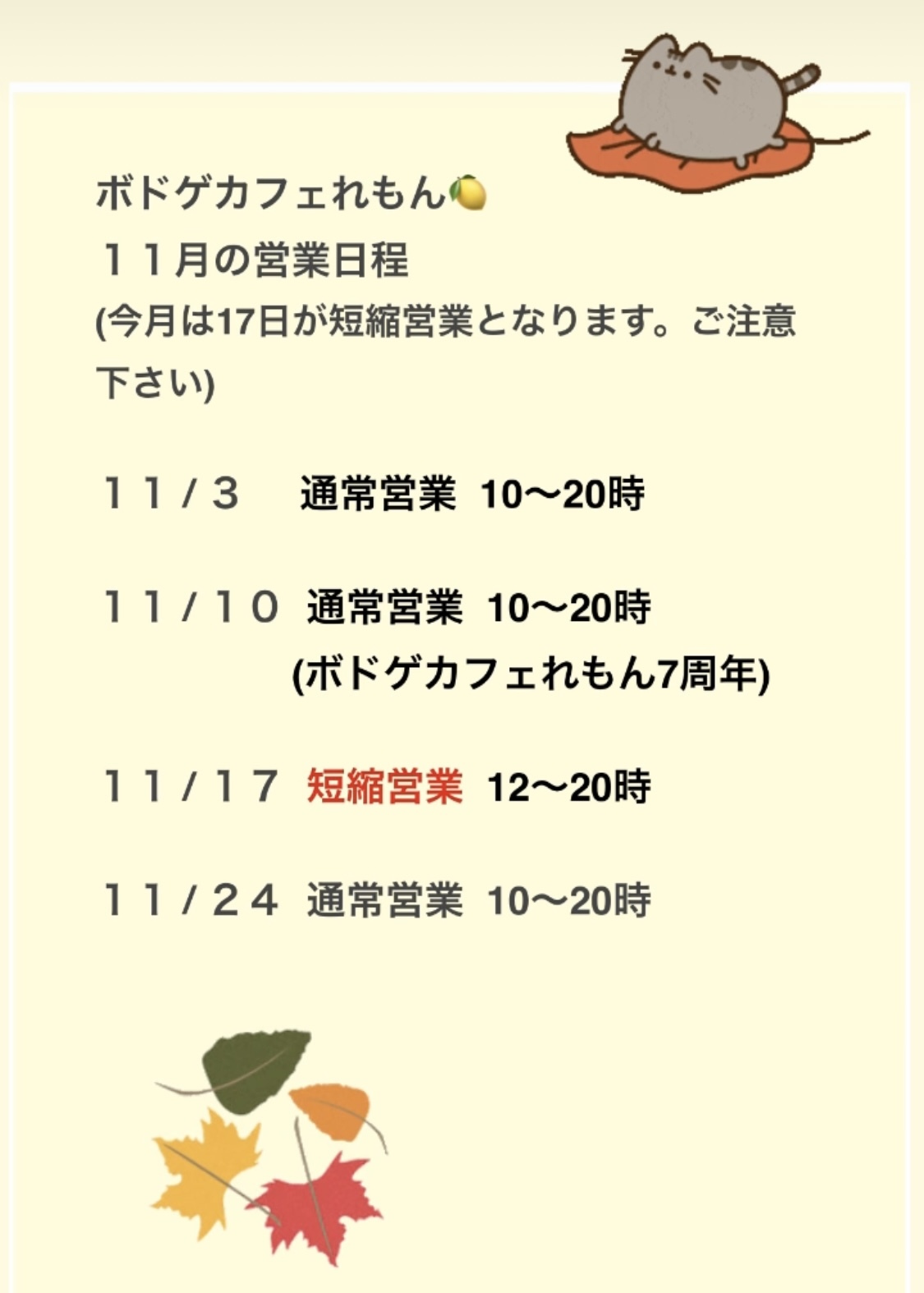 11月の営業日程