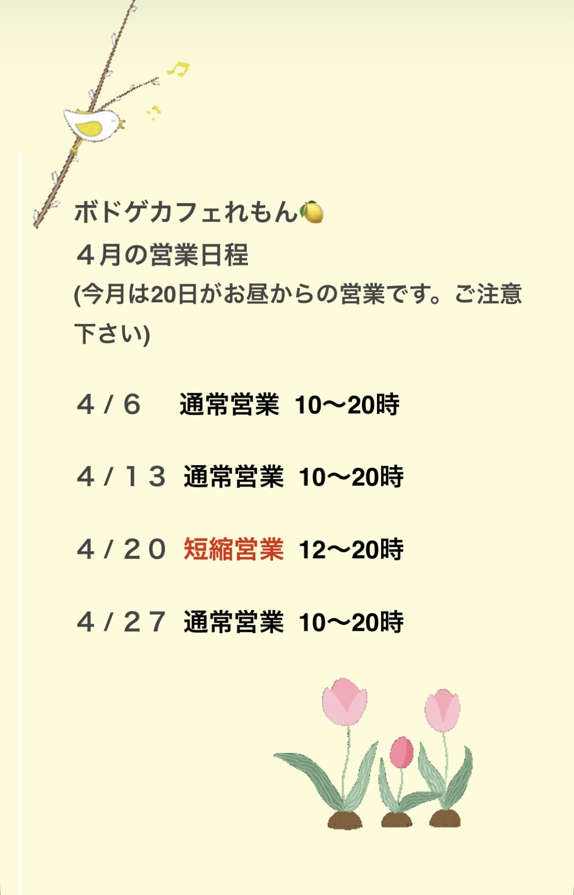 今月は20日がお休みとなりますので、お間違いないようご注意下さい