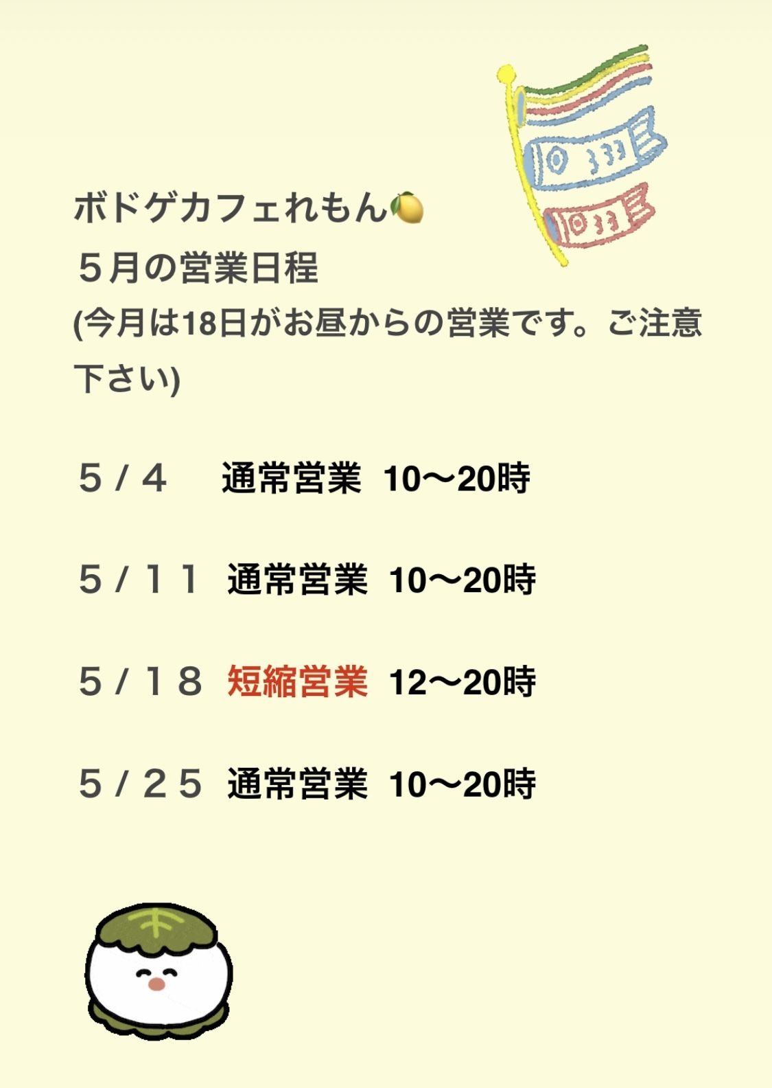 今月は18日がお昼からの営業になりますのでご注意ください!