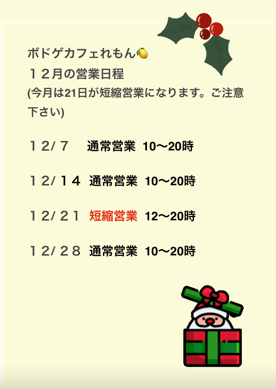 今月は21日がお昼からの営業になりますのでご注意下さい