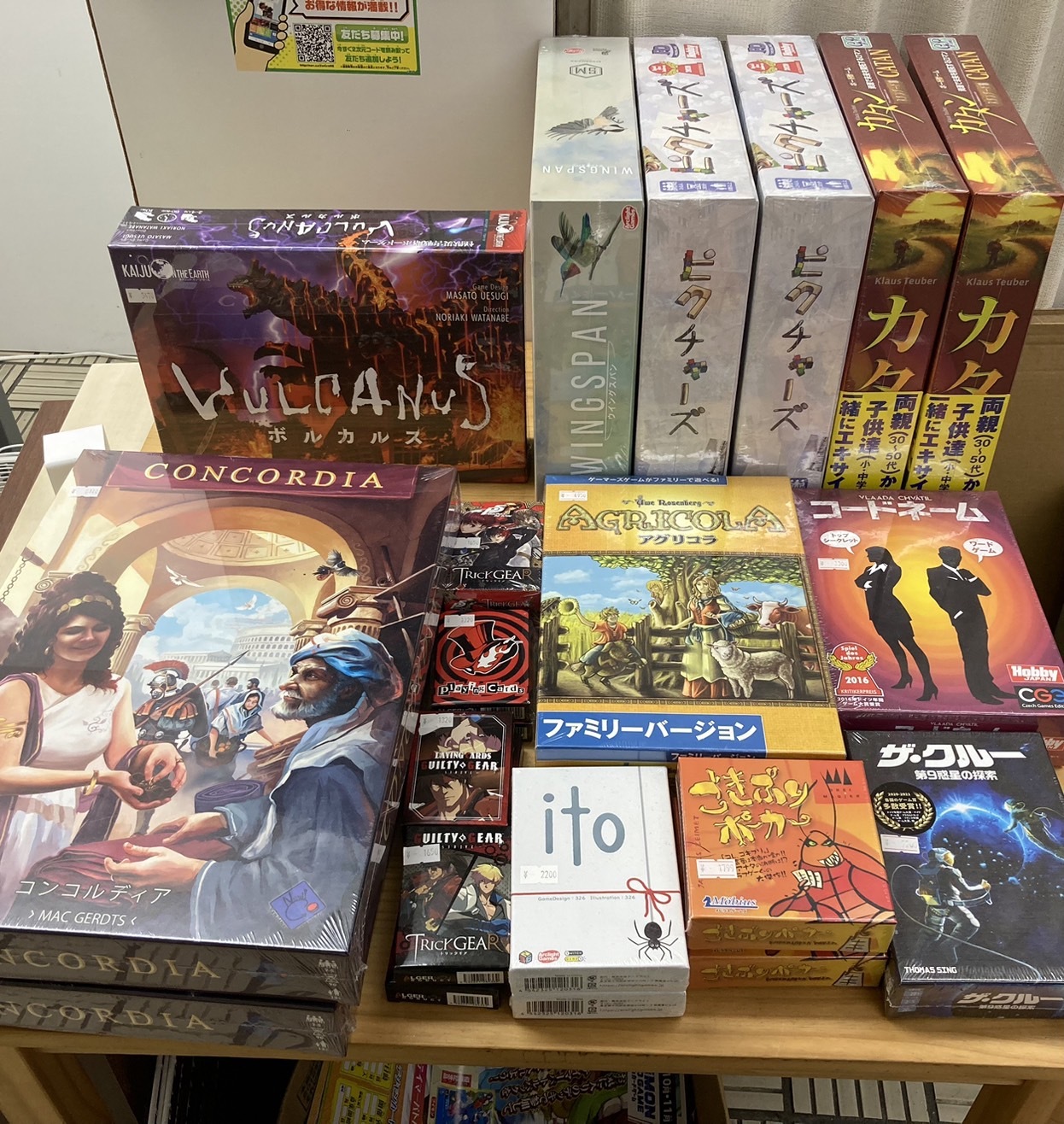ボードゲームは取り扱い一覧よりご確認下さい。(プレイ用のボードゲームも更新できないくらいあります、販売用も少し扱いはじめました)