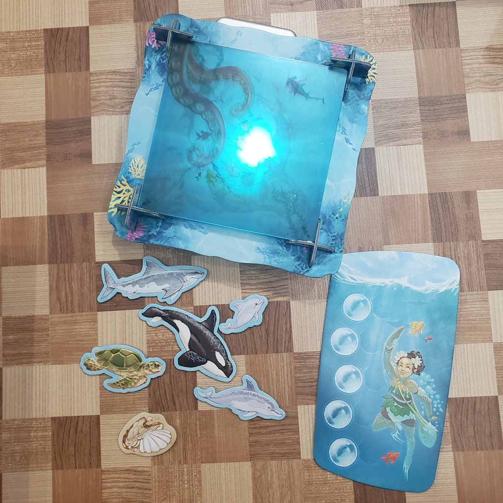 海を模した美しい透明な海洋シートを見て