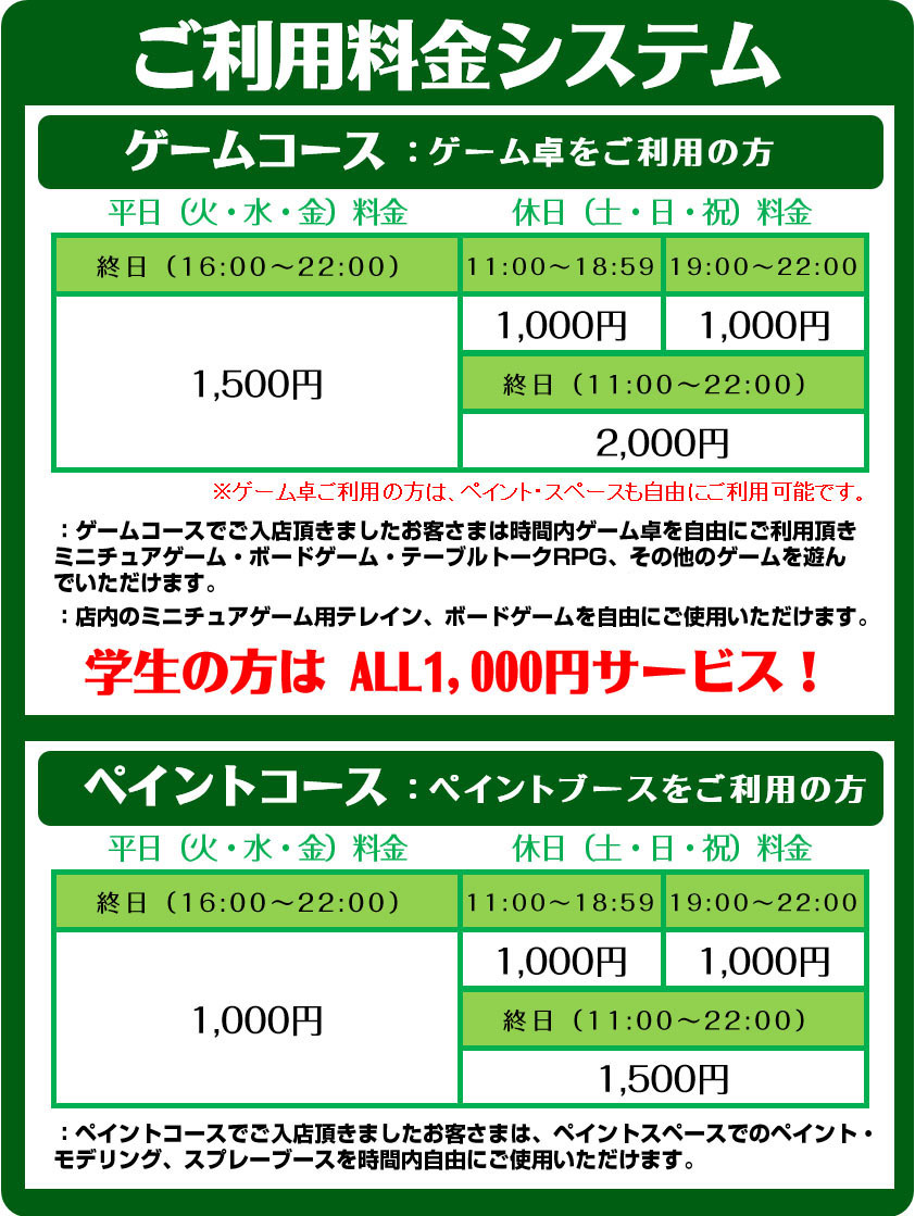 ミニチュアやTRPGは勿論、ボードゲームの持ち込みも大歓迎です。