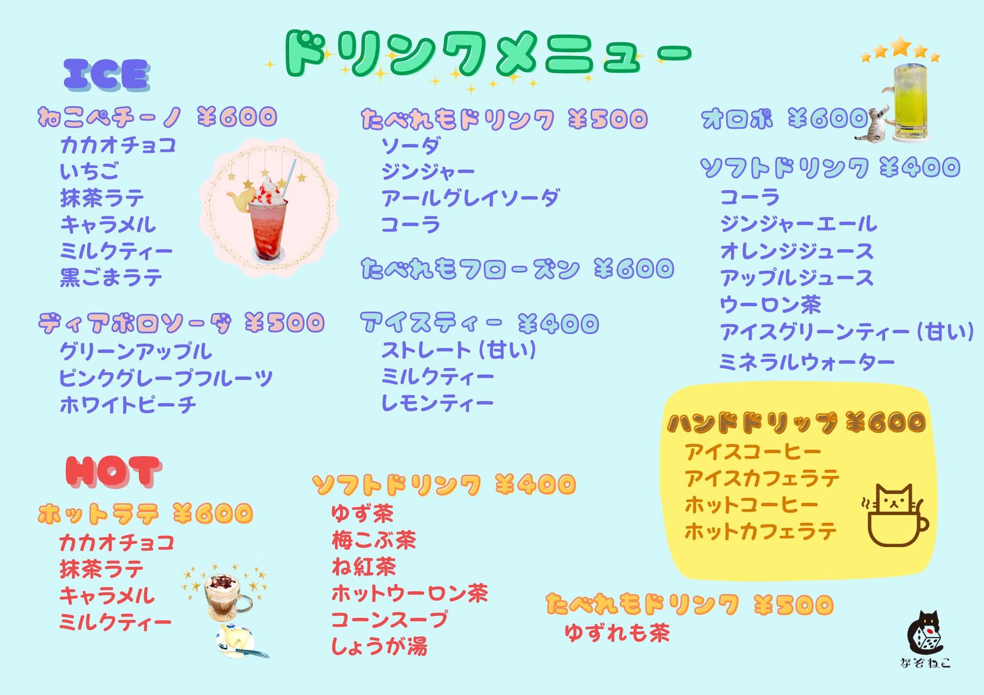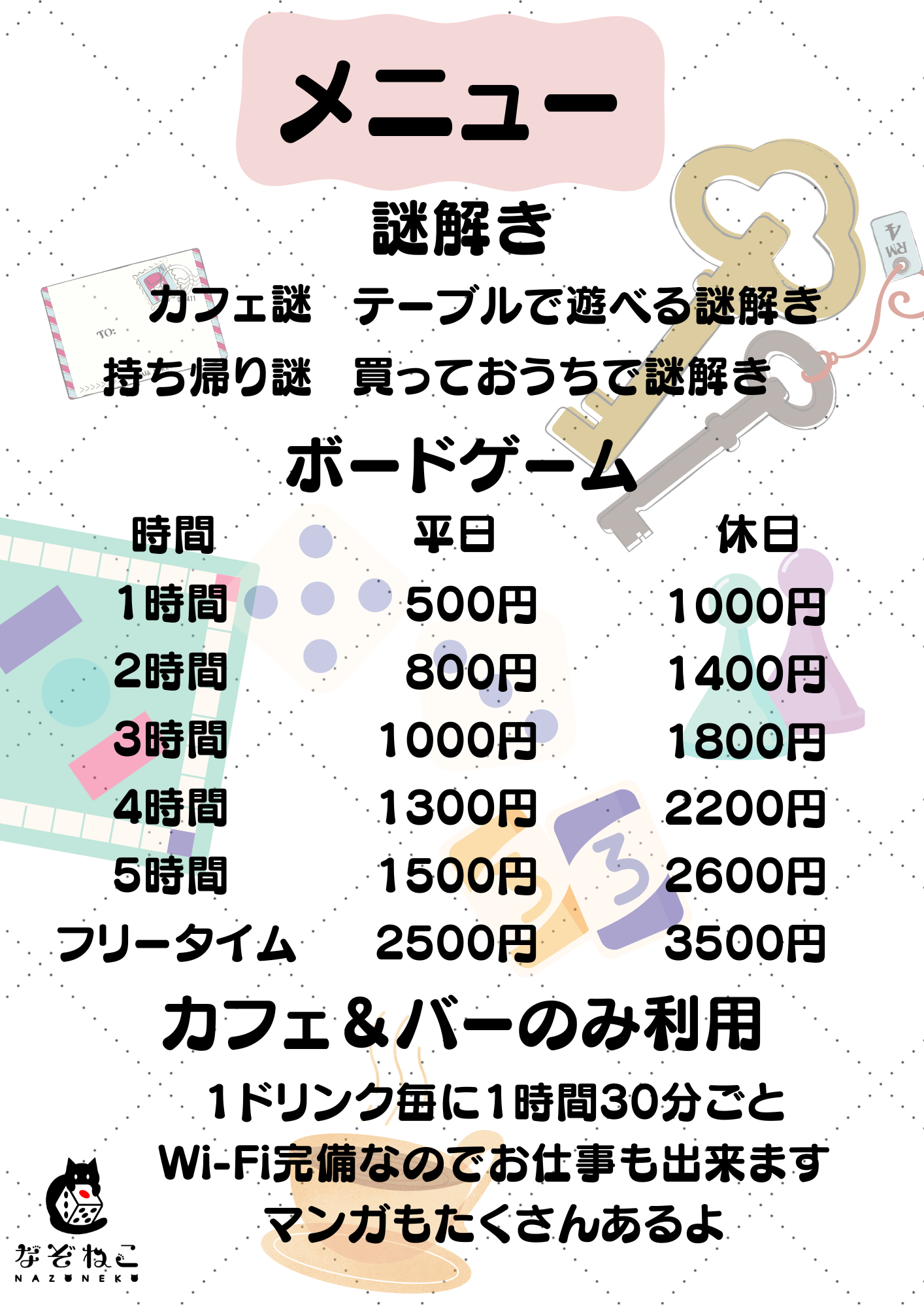 なぞねこ営業時間内であればドリンクの注文をして頂けます。