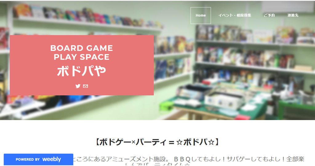- 6年以上前2019年05月19日 13時24分頃簡易的なご予約ホームページ、イベント表作りました!こんにちは 最近は、天気が暑くなったり寒くなったりで体調がなかなか優れない方も多いかとおもいます。そんなときは、家にこもって家族とボードゲームが一番ですよね! ということで、いままでカレンダー、イベント表、ご予約が連動していなくそして、予約するのにもツイッターでしか予約が出来なかったりで不便...185ページビュー