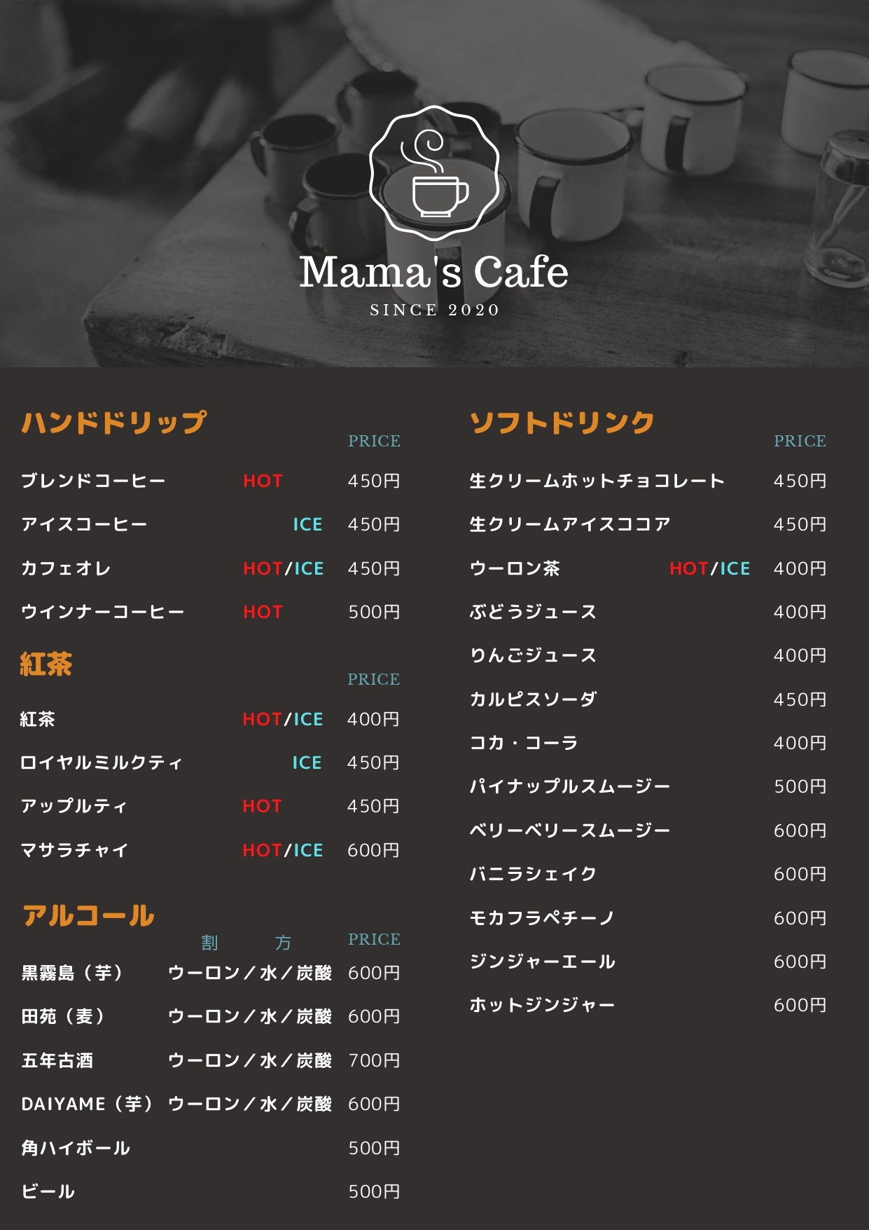 ドリンクメニュー