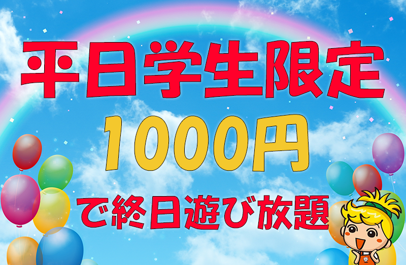 この度、平日学生限定1000円で遊び放題プランを開始いたしましたので、是非この機会に当店をお試しください。何卒よろしくお願いいたします^^