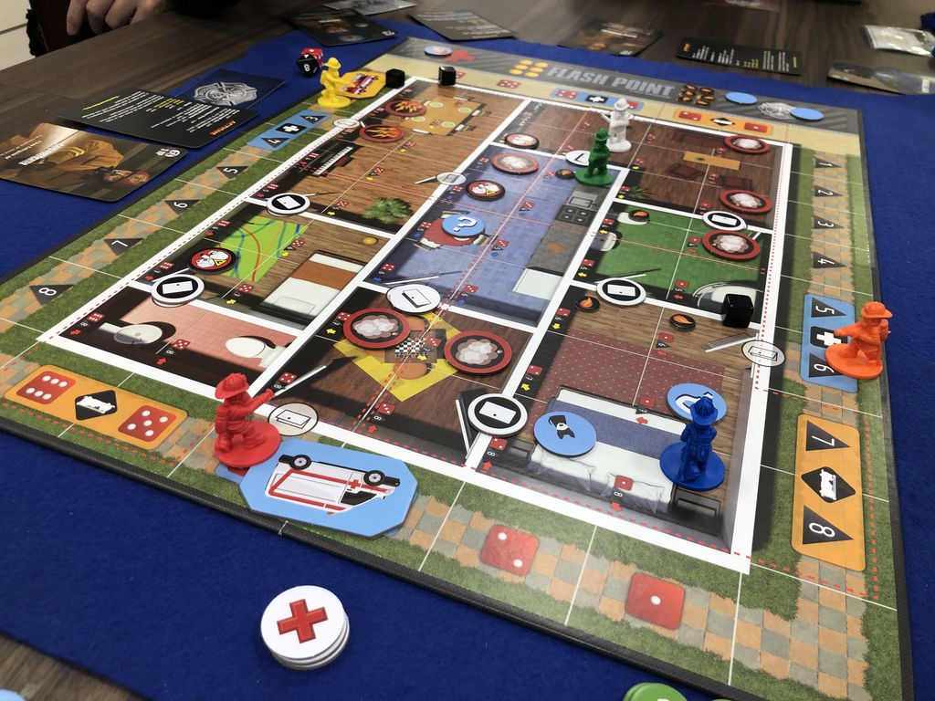 スタッフは別卓にいて参加できなかったんですが、「あー火を消し忘れた!」といった声も漏れ聞こえてきて、シリアスなテーマの割にワイワイ楽しいゲームみたいです。6人まで遊べるもの◯ですね。