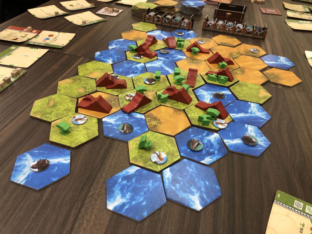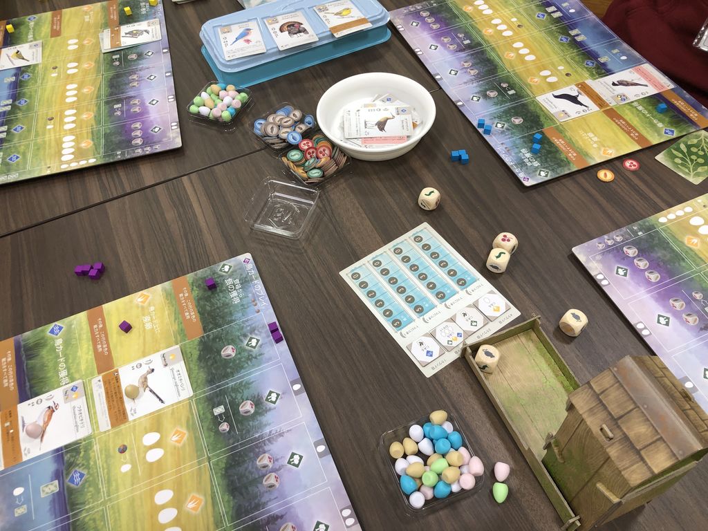 手番にできることは「カードのプレイ」・「餌を獲得」・「卵を獲得」・「カードを獲得」の4つのどれか、とシンプルなんですが、鳥カードが1枚1枚違った個性を持っているので、手持ちのカードでどうやって点数を稼ぐか悩ましいゲームです。