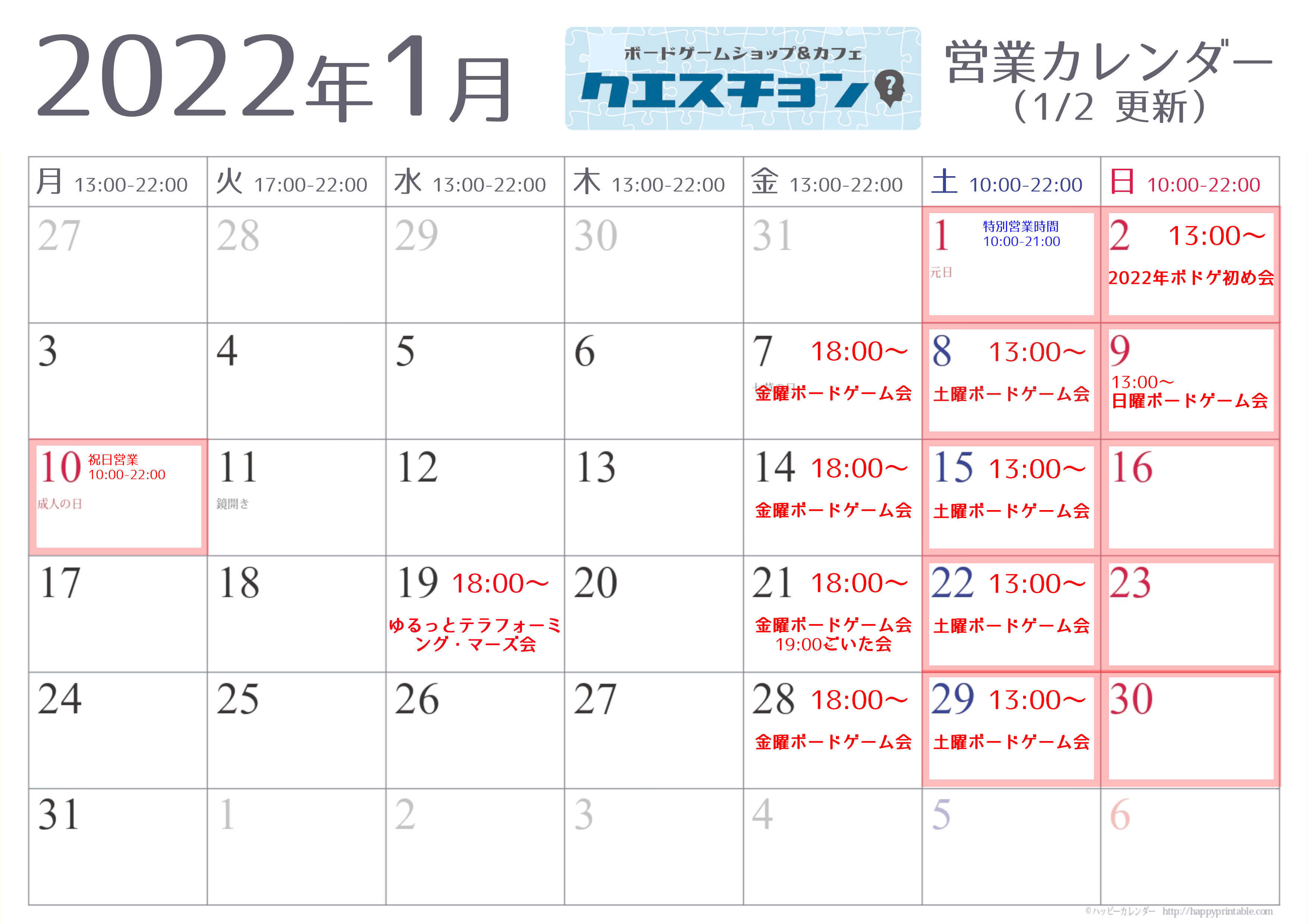 1/7の18時から〈金曜ボードゲーム会〉、1/8の13時から〈土曜ボードゲーム会〉、さらに3連休ということで1/9の13時から〈日曜ボードゲーム会〉を開催しました。
