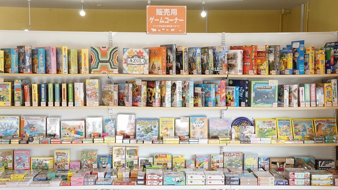 - プレイスペースで遊べるゲームは約450種類。3歳のお子さんも遊べるものから、大人も頭をしっかり使うものまで、いろいろな作品があります。子ども・家族・初心者向けの作品が多いのが特徴です。