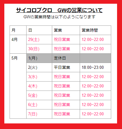GW期間中も当店では12:00~営業いたしております!
