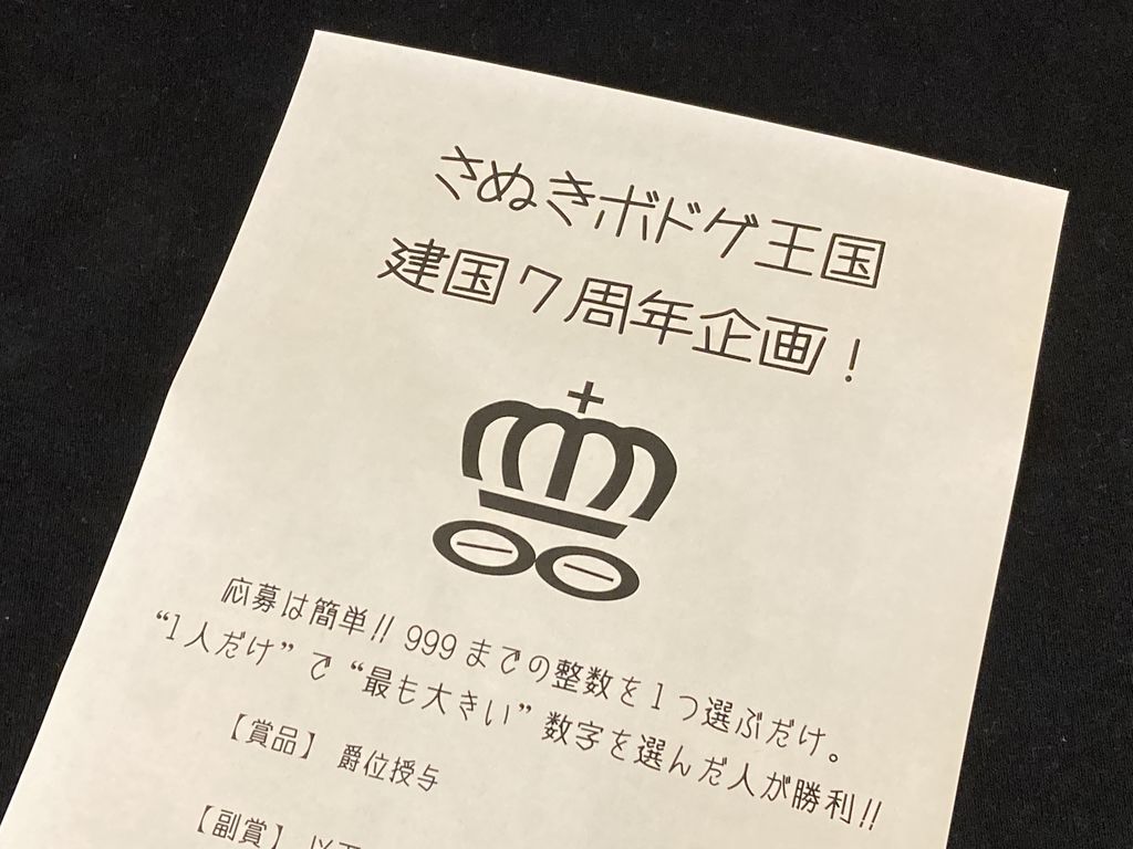 昨年はいろいろと大変な年でしたが、さぬきボドゲ王国はなんとか建国7年を迎えることができました。ひとえに応援してくれるお客様のお陰であります。