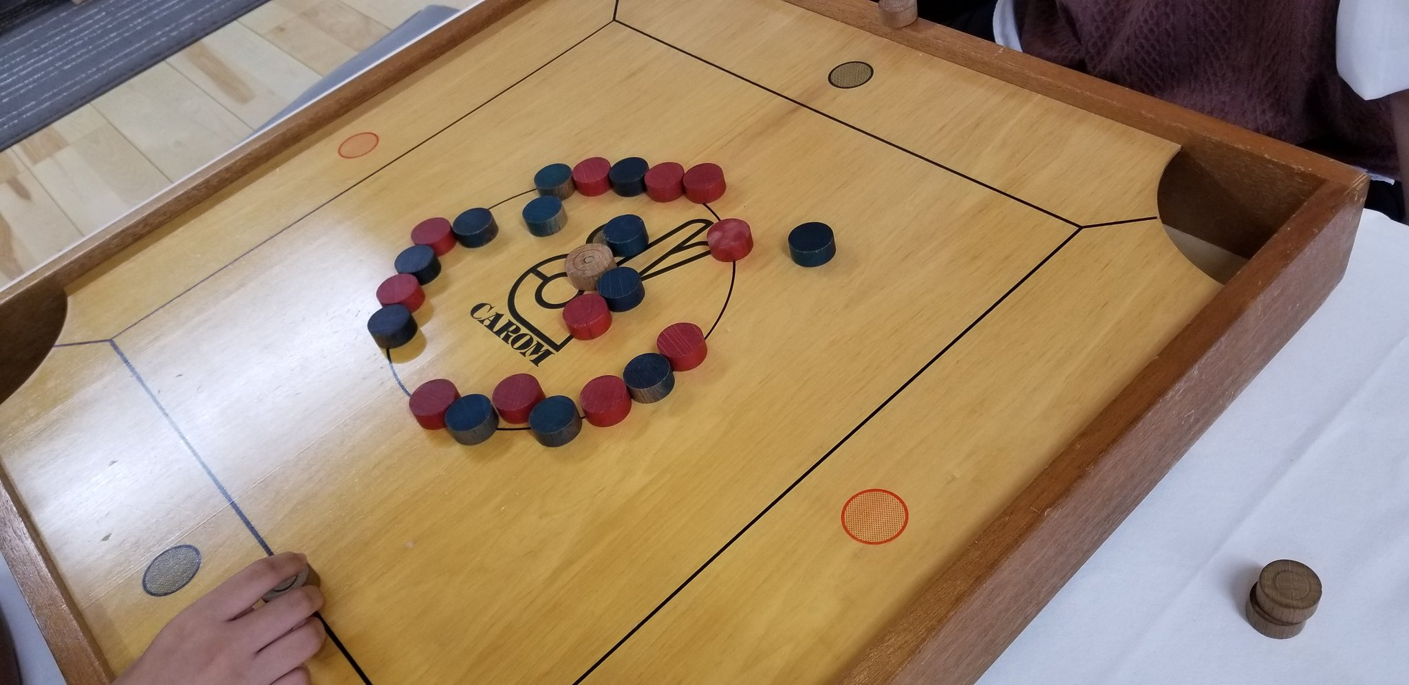 店内に常設していますので、指ではじくビリヤードチックなゲームに興じてみませんか?