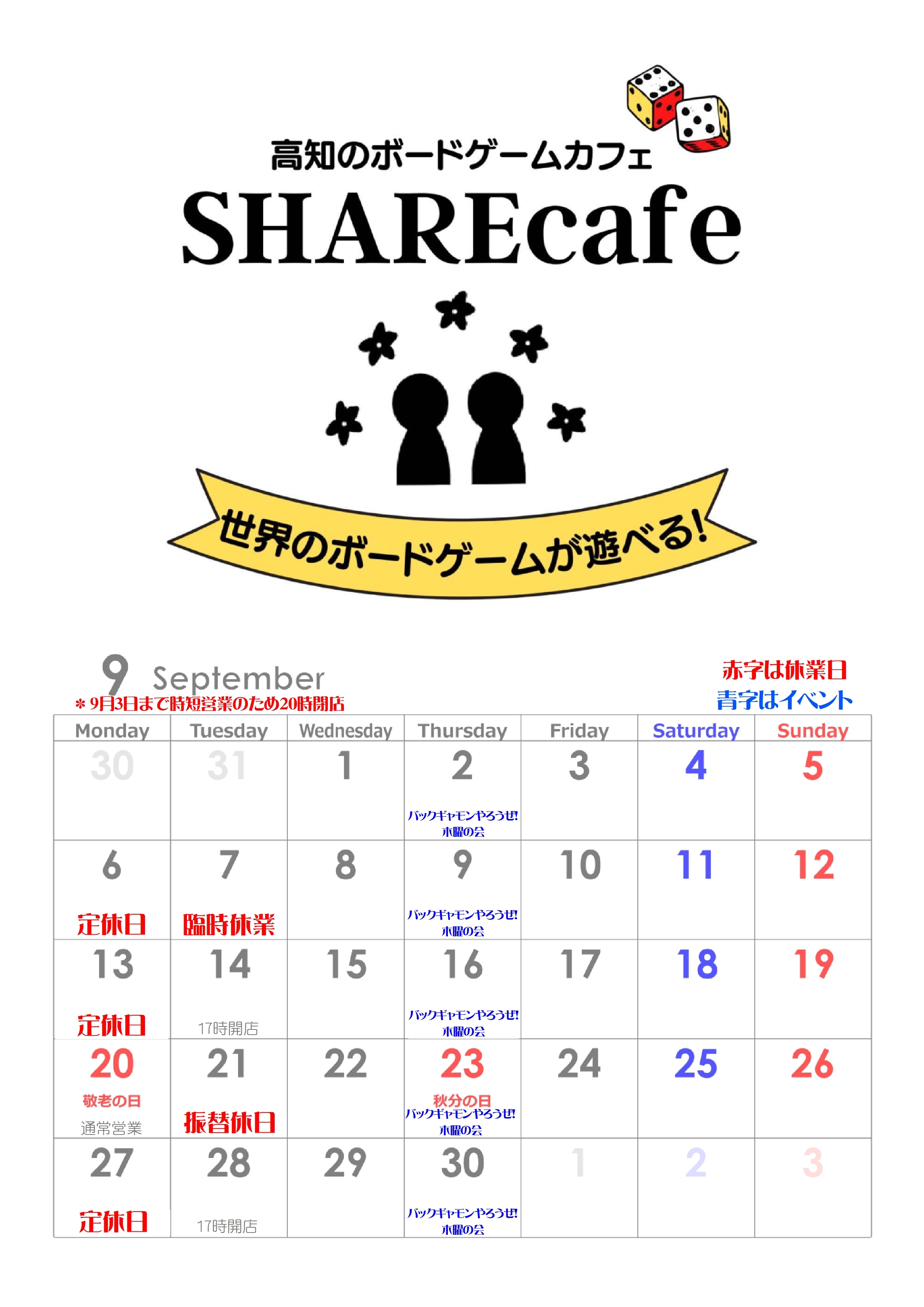 SHAREcafe 9月のカレンダー