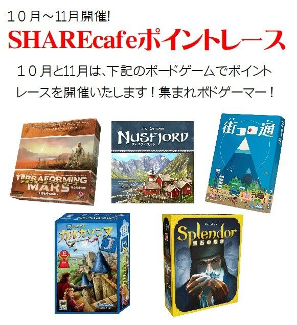 10月~11月の2か月間、SHAREcafeポイントレースを開催いたします。