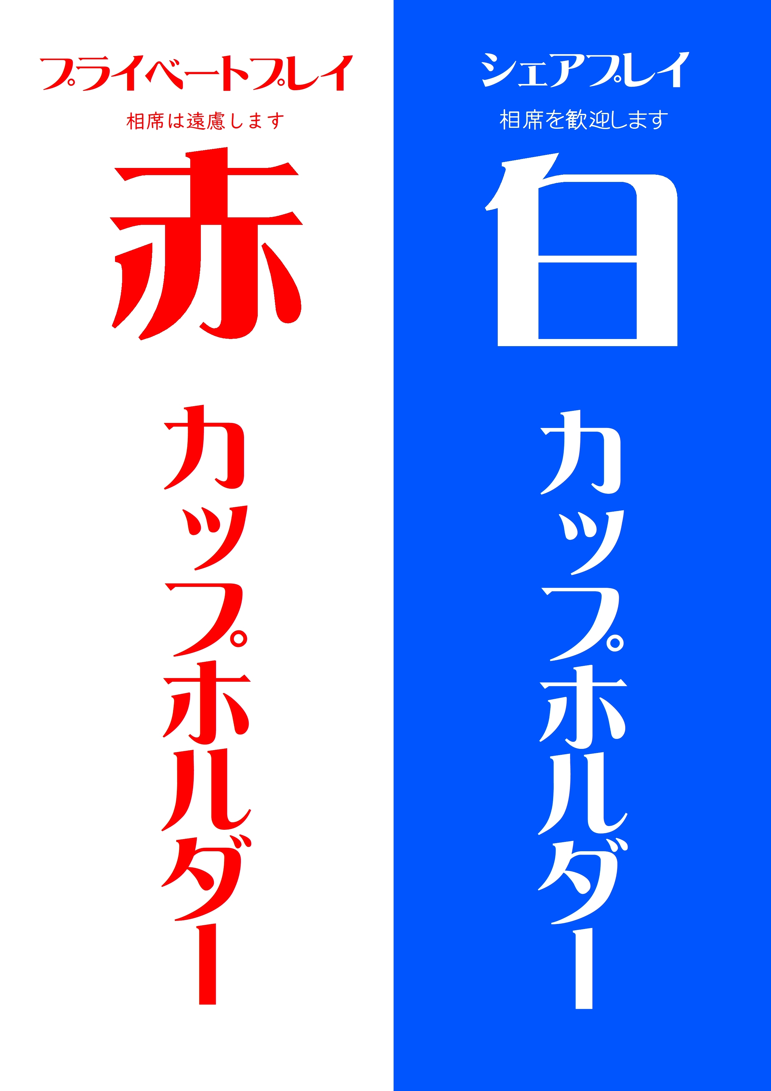 SHAREcafeでは「相席歓迎のシェアプレイ」と「相席は遠慮しますのプライベートプレイ」の意思表示ができるアイテムとして、白と赤のカップホルダーをご用意しました。