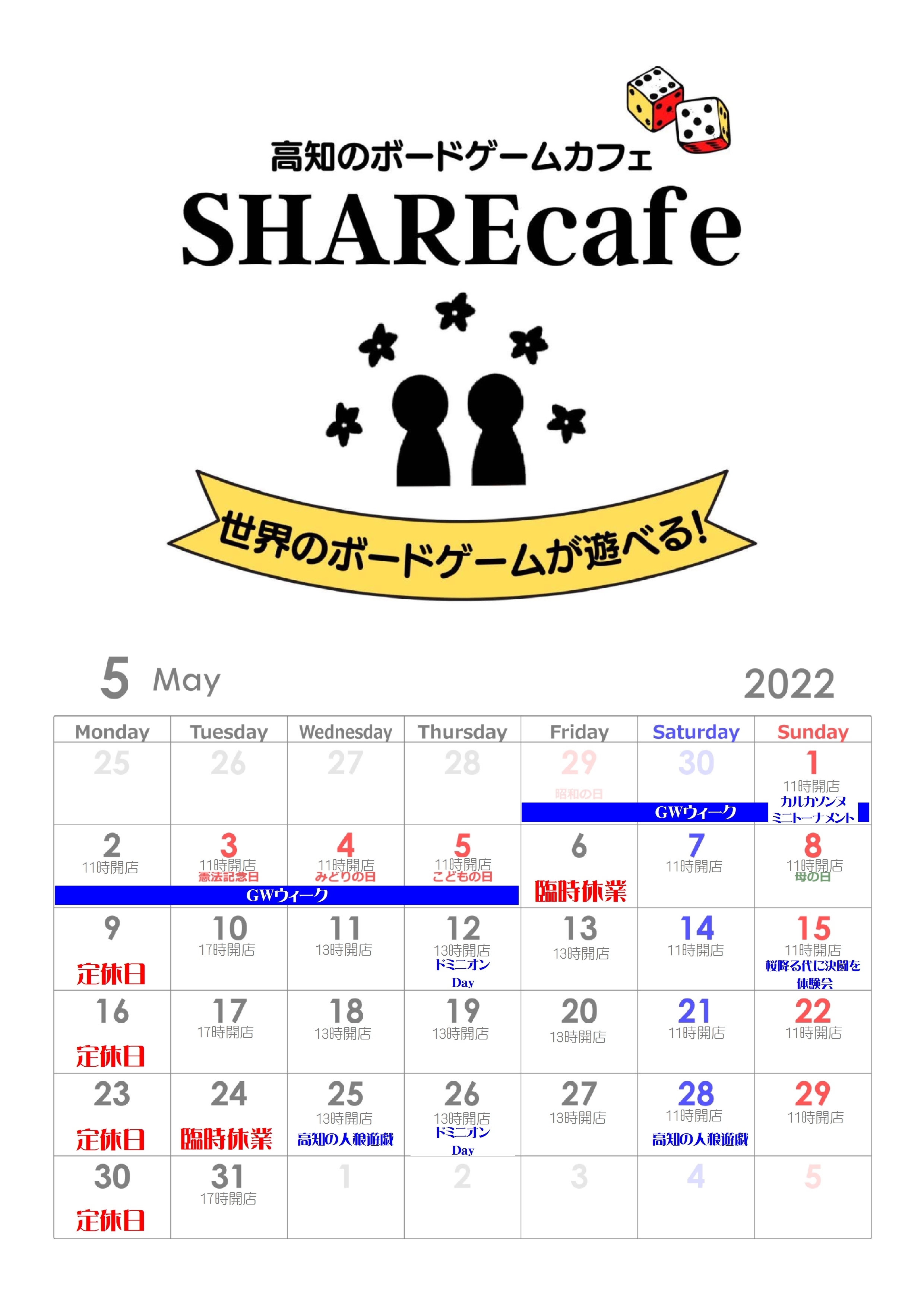 5月の営業カレンダーです