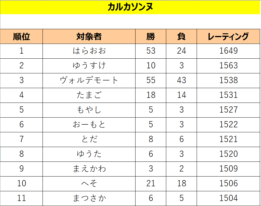 この表はレーティング原点(1500点)以上の方を抜粋したものです。