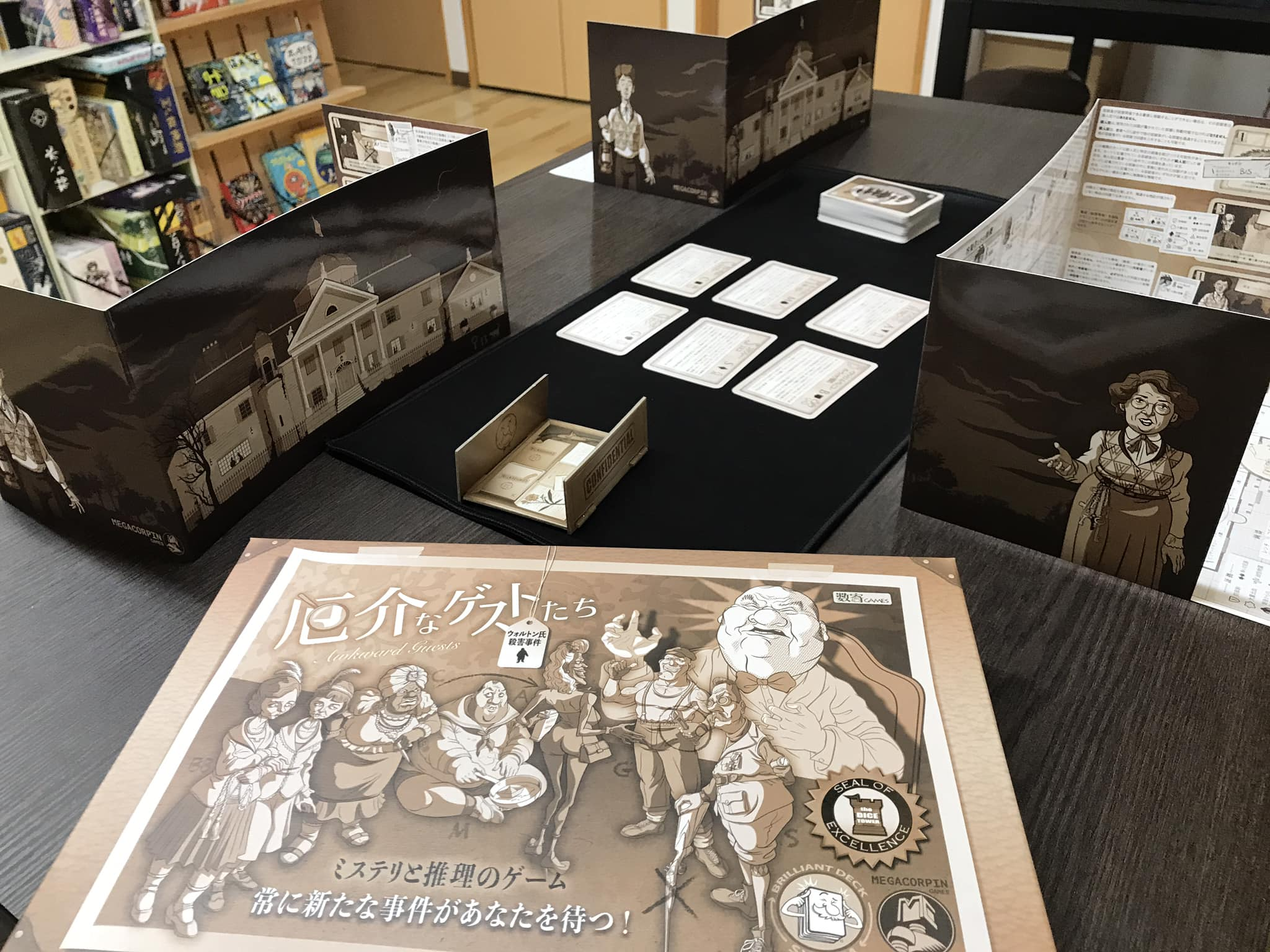 推理ボードゲーム の古典「クルード」の超進化版とも言える作品で、他のプレイヤーとの情報交換しつつ、論理パズルを解く感じが、プレイヤーからは流行のマーダーミステリーっぽいと好評です。