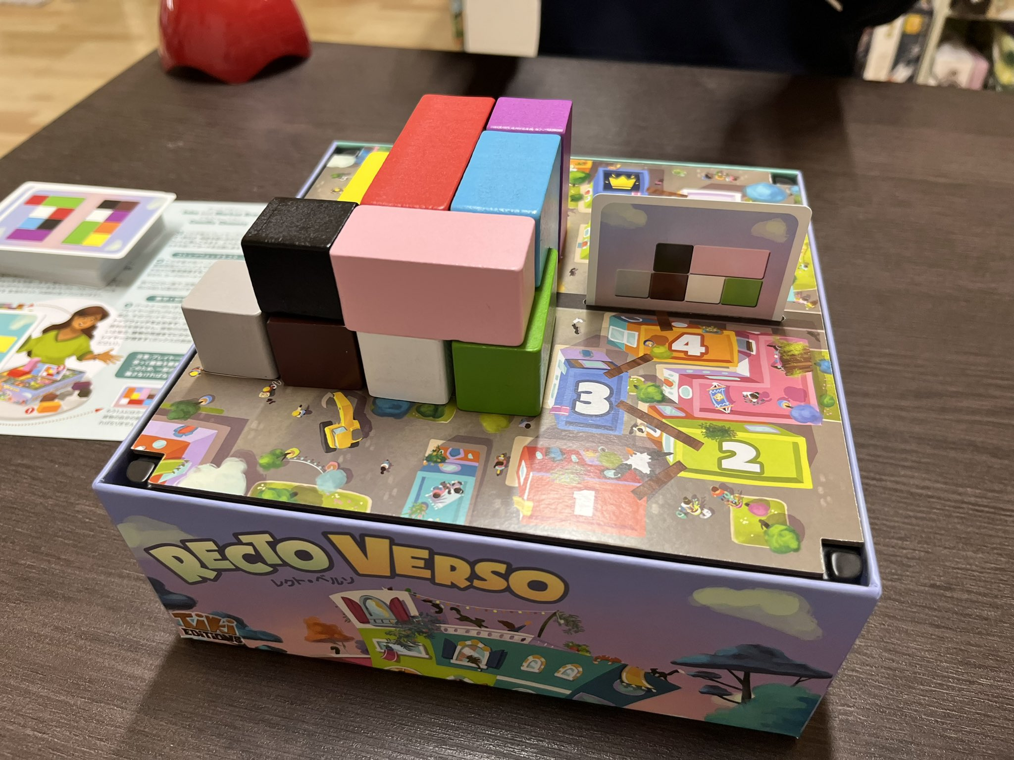 プレイヤーがそれぞれ違う情報を持ちよってパズルを完成させる傑作ゲームとしてメンタルブロックがありますが、欠点としてある程度人数が必要な点。それに対してこのレクト・ベルソは基本的に2人ゲーム(箱には6人までとありますが事実上2人ゲーム)となっていますので、気軽に遊ぶ事ができます。