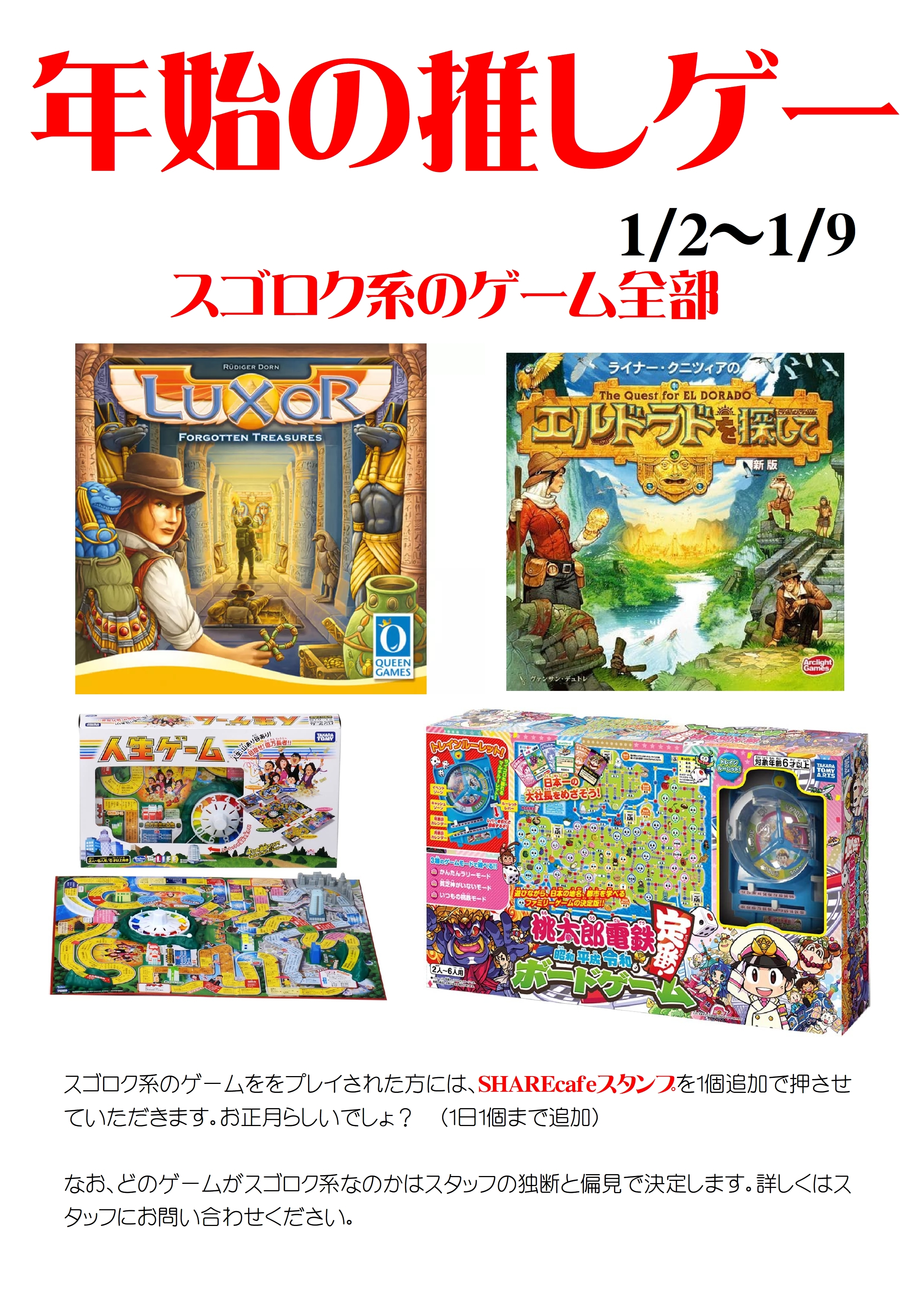どのゲームがスゴロク系なのかはスタッフの独断と偏見で決定しますので、詳しくは店頭でスタッフにお問い合わせくださいませ。