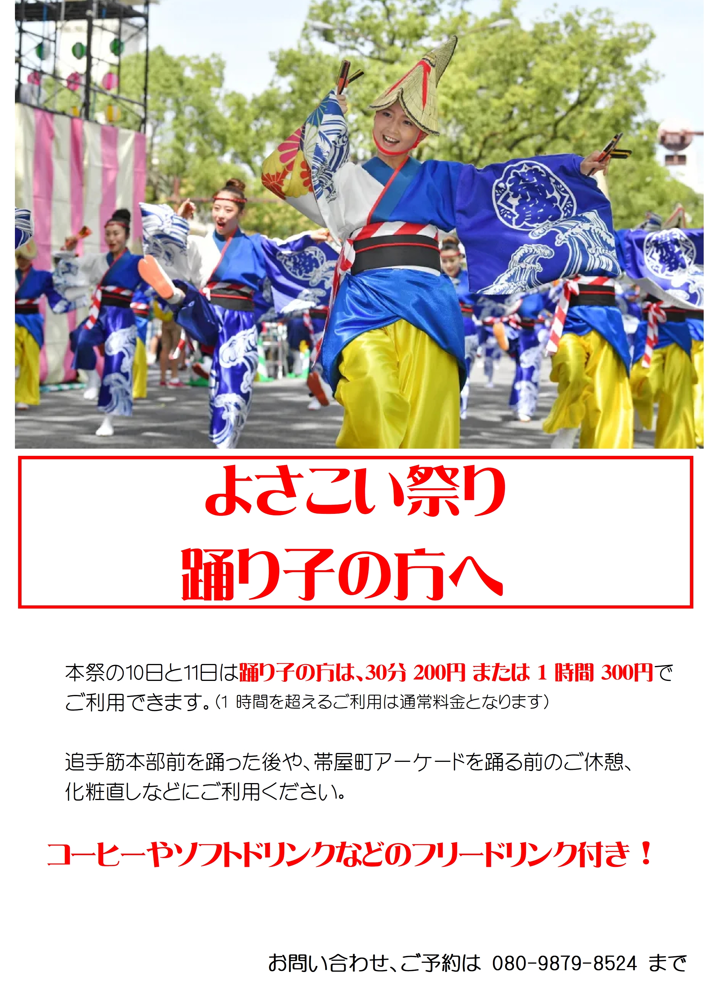8月10-11日の本祭期間、踊り子の方の休憩場所として特別割引です。