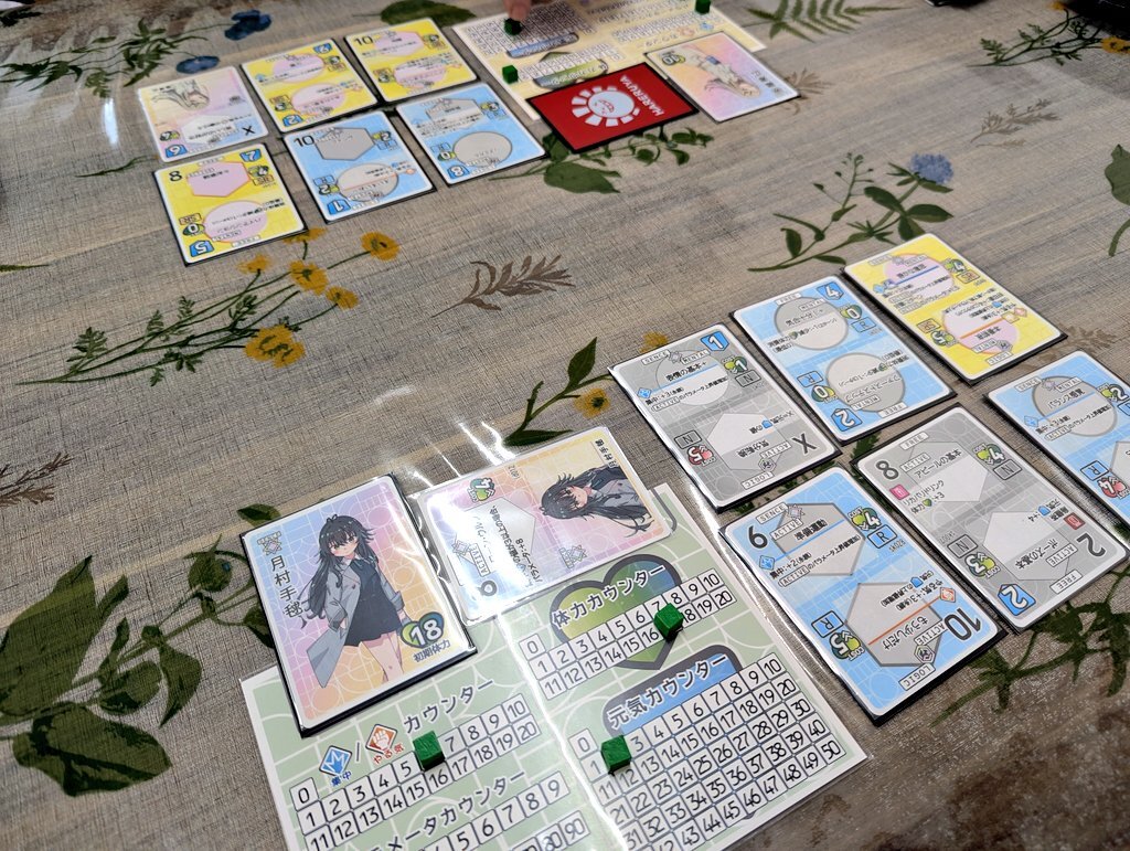 アイドルごとに固有のカードも用意されているのでそれに合わせてカードを選んでいく必要があり、このゲームの面白いところは手札を相手に渡すところだと思っています。毎月開催してますので興味がある人は参加お待ちしてます。