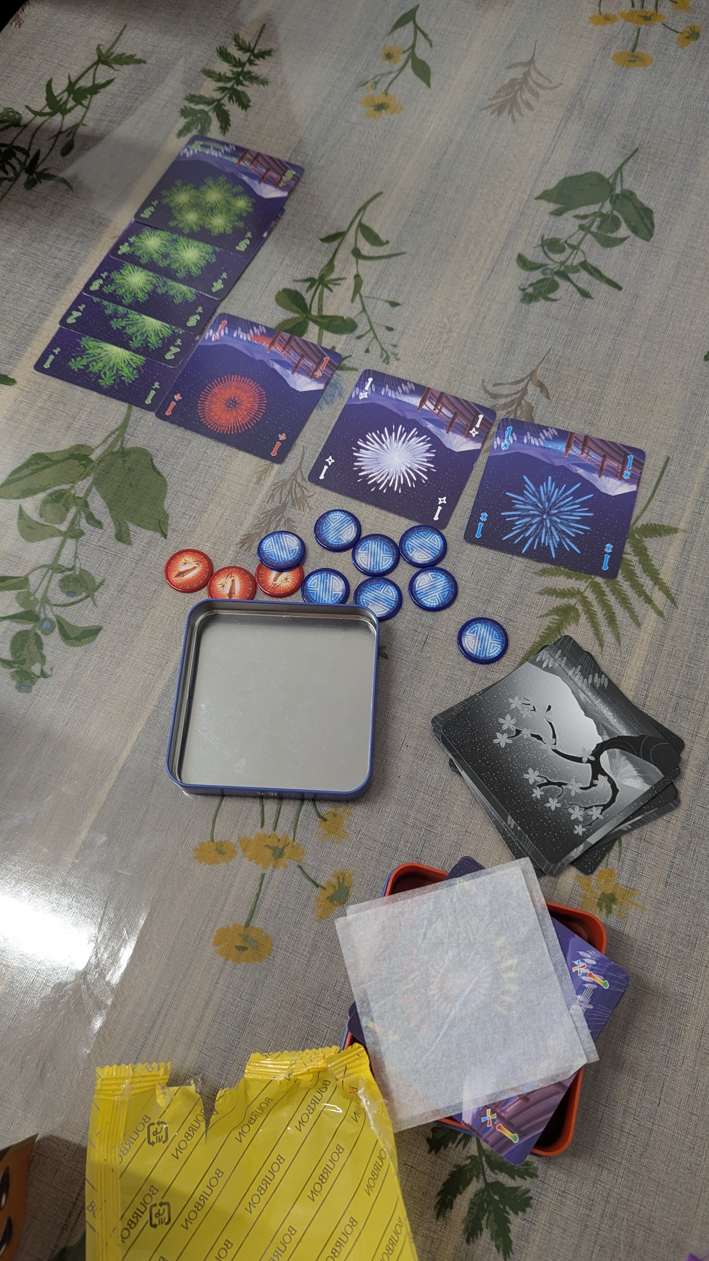 自分の手札は見れず、相手の手札の花火の色や数字を教えてあげることができて5色の花火を1~5まで順番に打ち上げることが目的となります。