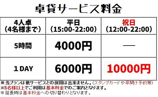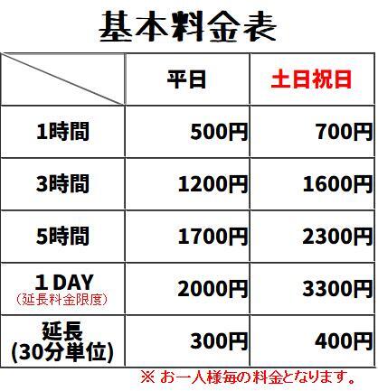 | 料金レンジ | 平日1時間500円~祝日1day3300円 |