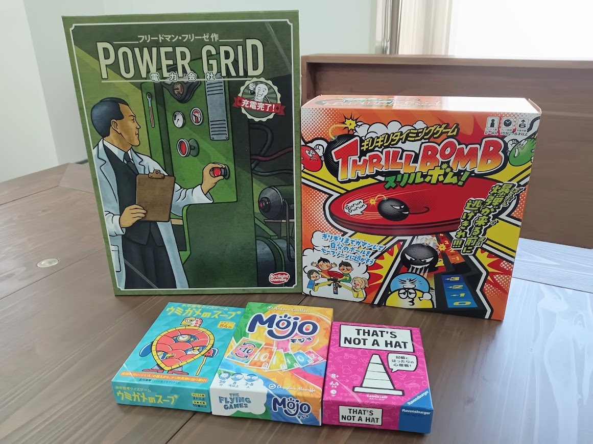 それぞれのゲームを簡単に「どういったゲームか」という点と「どれくらいのテーブル占有感か」という点をご紹介致します!