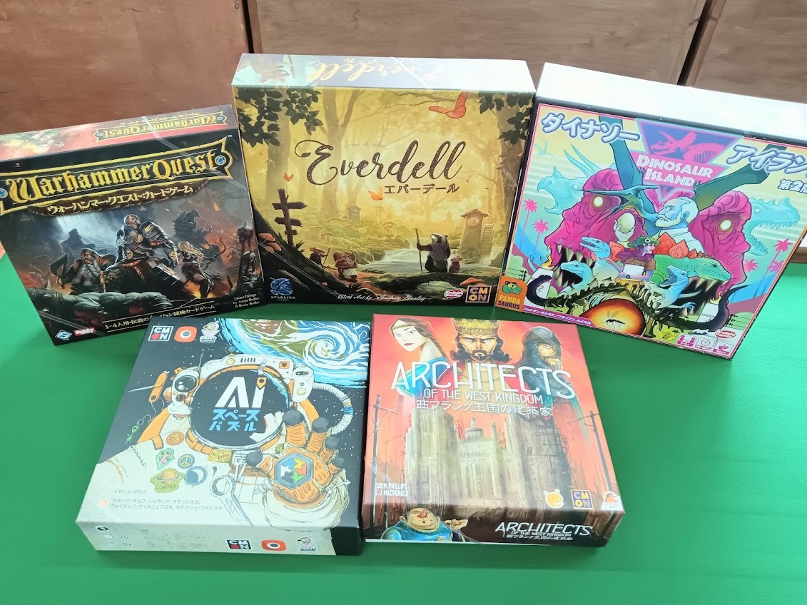 - 約2ヶ月前2025年10月12日 14時52分頃【リスト追加】「マッチ売りの大富豪」他【8月準新作】・マッチ売りの大富豪【既存軽~中量級】・チーズは誰が食べた?・プロジェクトL・タギロン・キャットインザボックスその他当店の貸し出しゲームリストはこちらから!41ページビュー