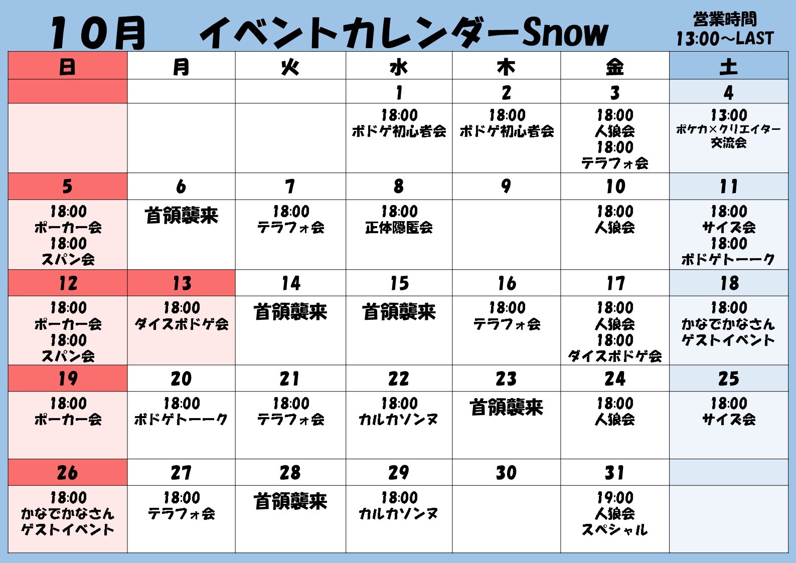 10月度のボードゲームイベントのカレンダーです✨️✨️