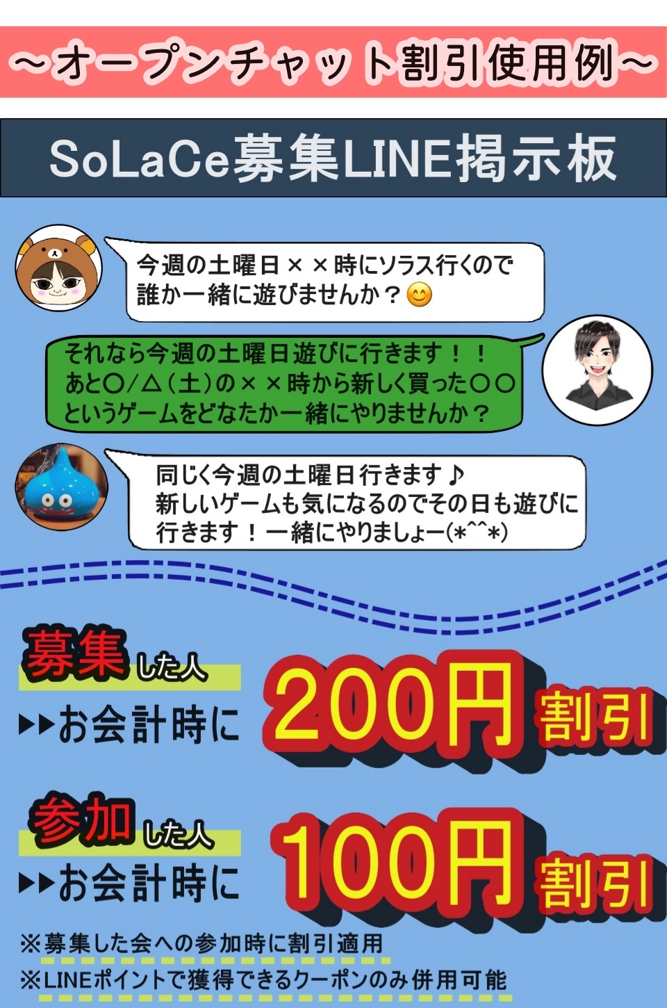 更にソラス専用のオープンチャットも開設しているので事前に遊ぶ仲間を募ることもできます!