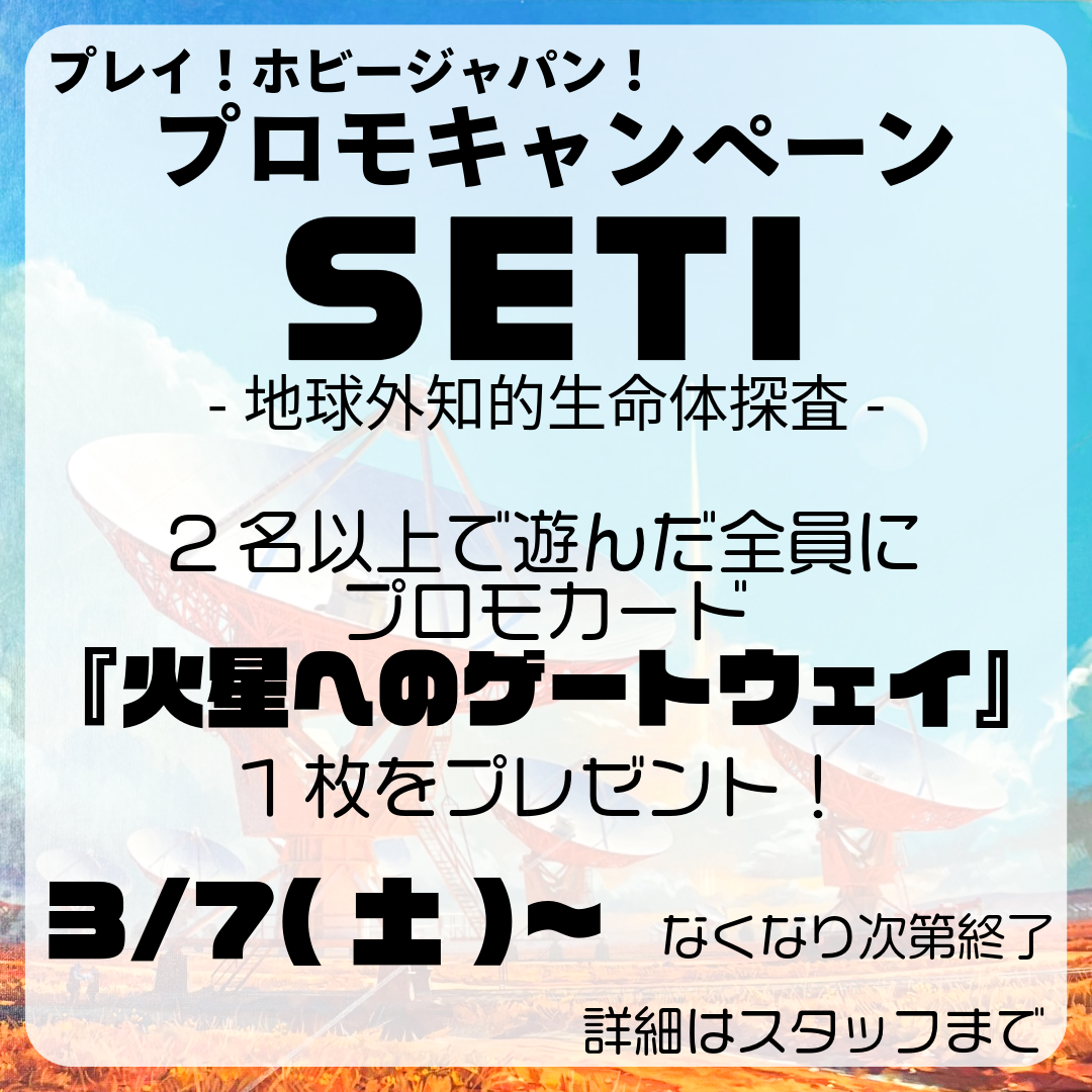 - 約3時間前2026年02月28日 14時08分頃SETI :地球外知的生命体探査プロモキャンペーン開催中🪐プレイホビージャパンSETI:地球外知的生命体探査プロモキャンペーン開催中プレイ時間の長いゲームのため、ご予約優先とさせていただきます🙇ご予約の際は「プロモキャンペーン希望」とお伝えください。TEL052-838-7546公式LINE@940gqtas2ページビュー