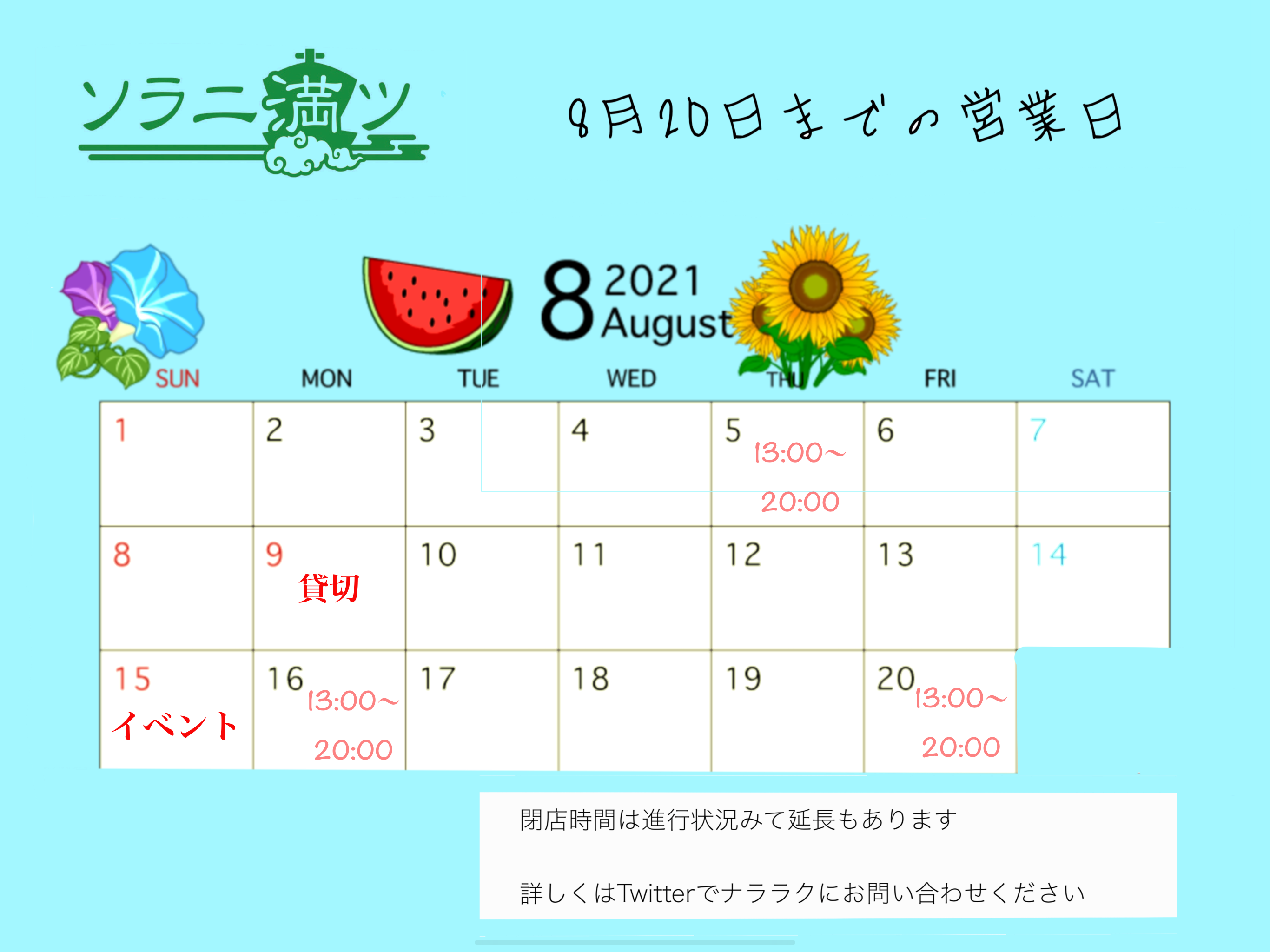 - 5ヶ月前2025年06月29日 14時06分頃7月の営業スケジュールですこんにちは。奈良町のボードゲームスペース「ソラニ満ツ」です7月の営業スケジュールです。今月は日曜日にお休み多いですお間違いのないようにお越しくださいませ31ページビュー