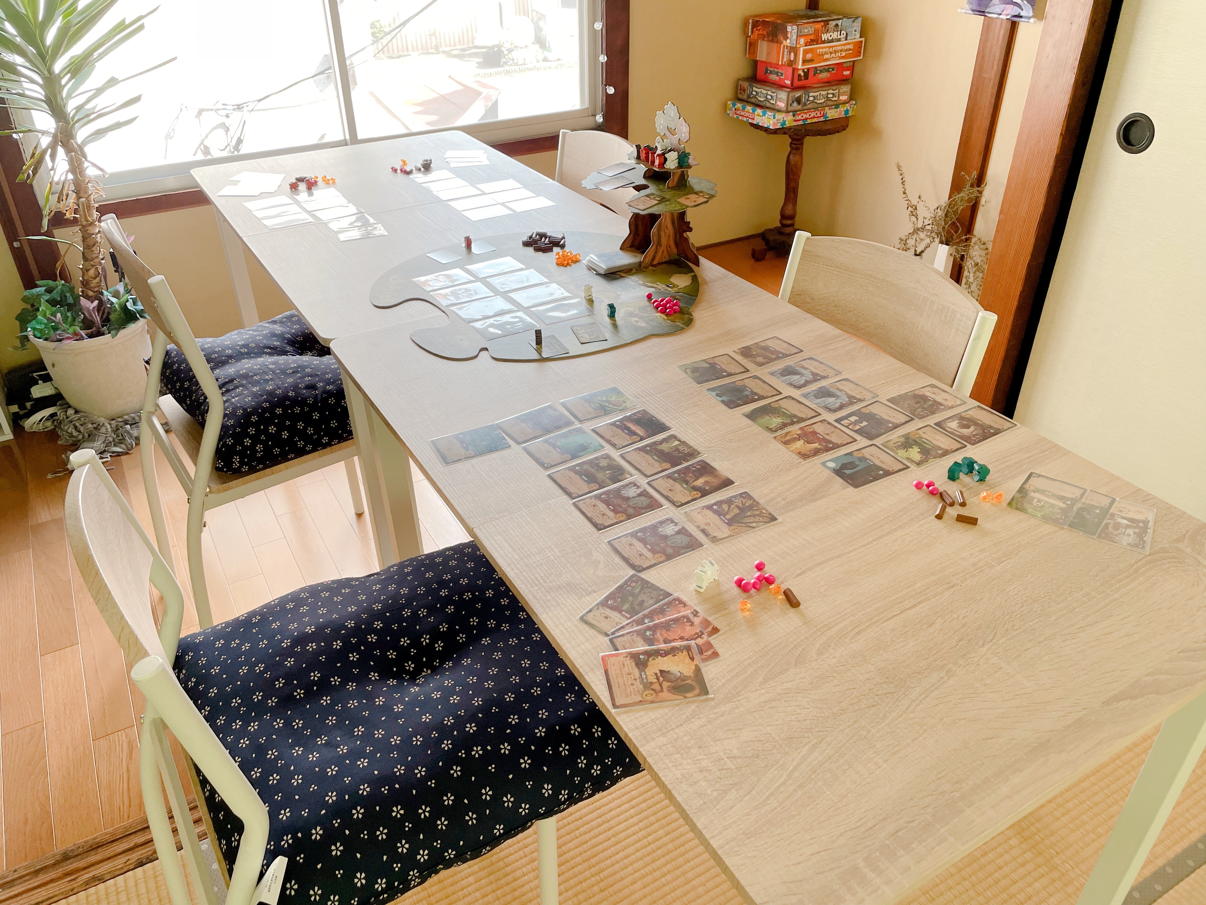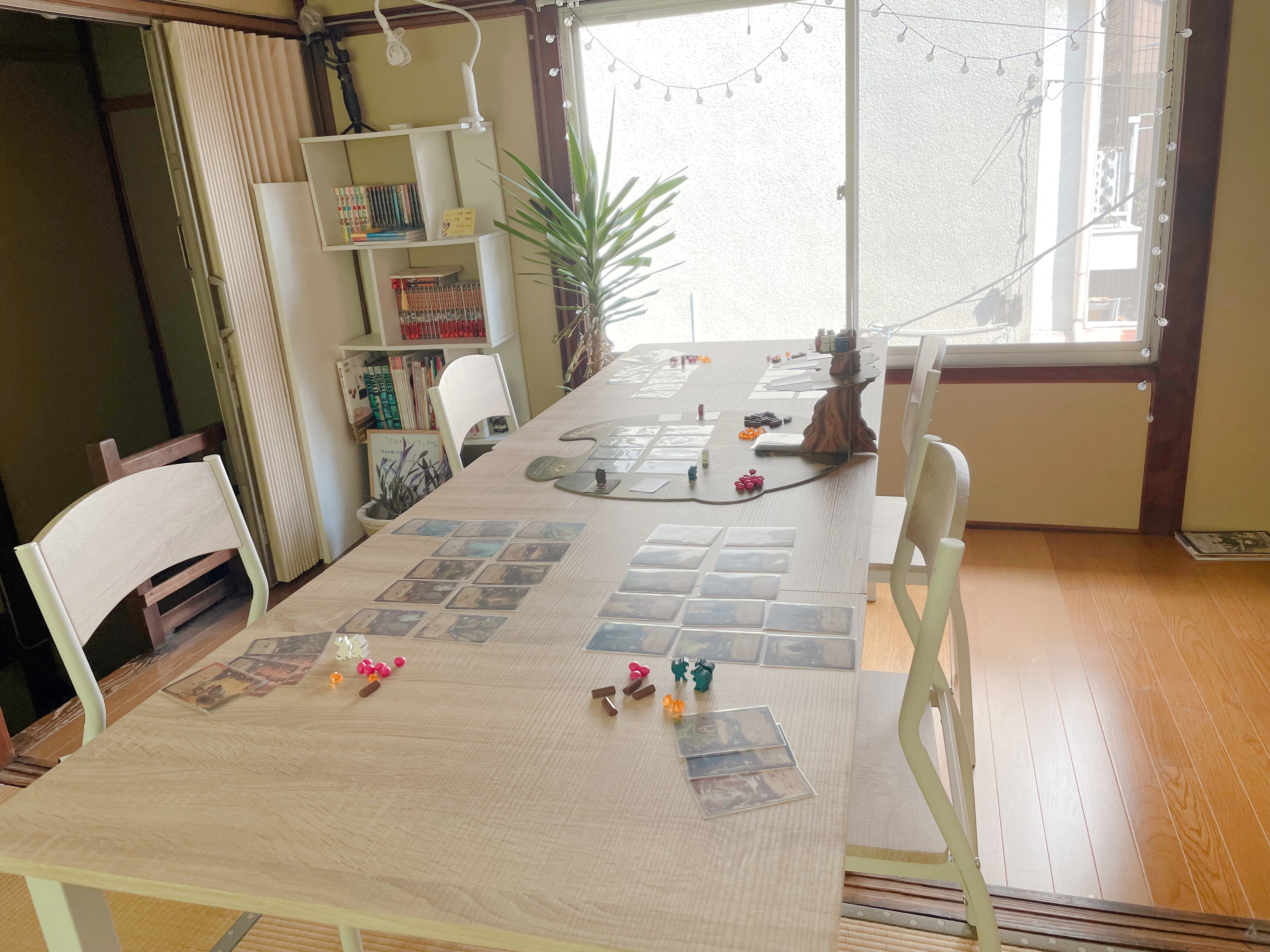 しかもテーブル2台をくっつけると場所をとる重ゲーもバッチリです。
